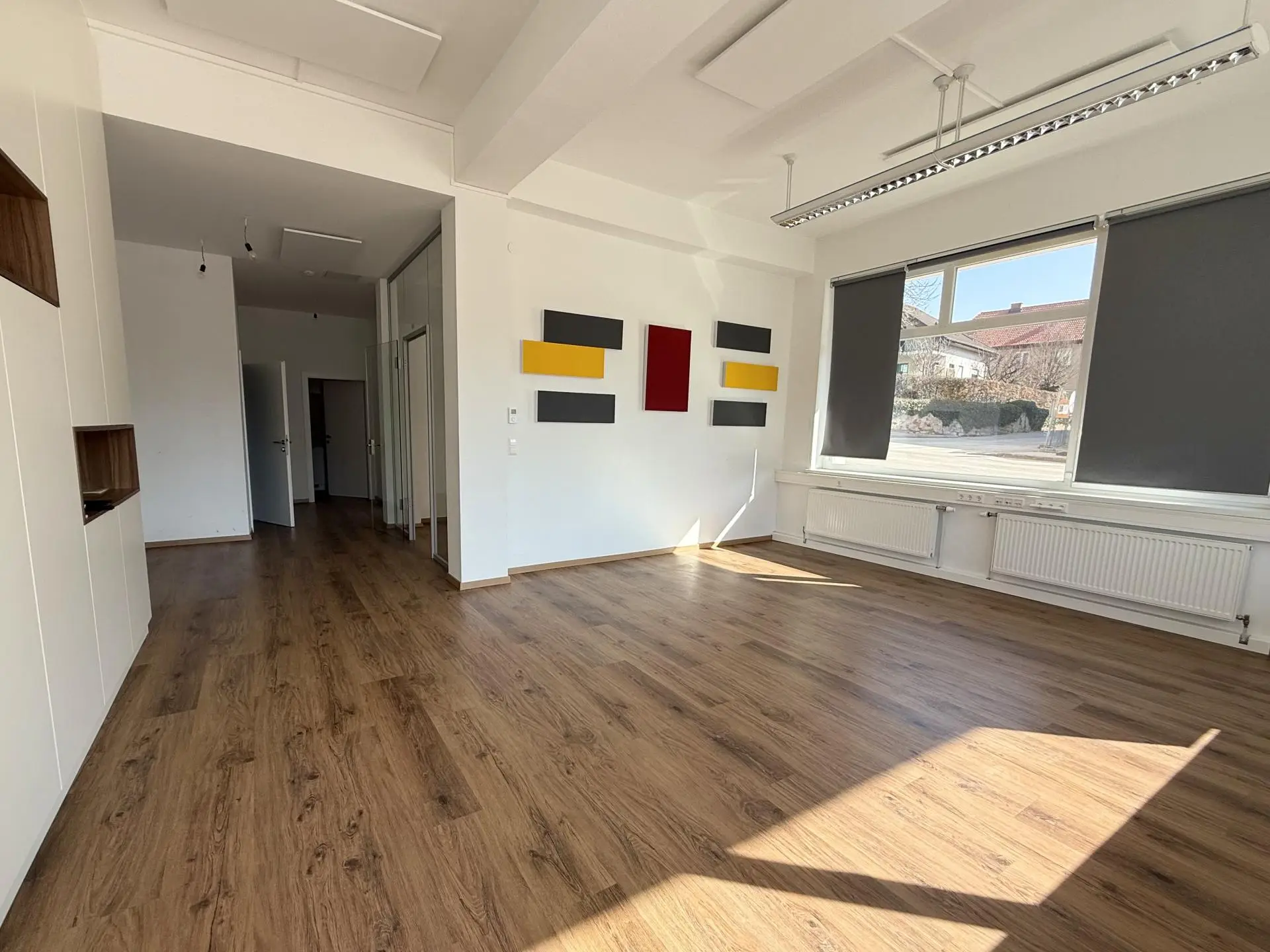 Dank neuer Böden, Türen, Elektrik und bestehender IT-Infrastruktur sowie Sonnenschutz bieten Sie sich und Ihren Mitarbeitern modernen, adäquaten Raum zum Arbeiten und Empfangen von Kunden - Klimaanlage & elektrische Rollos inklusive! Geheizt wird kostengünstig via Infrarotpanele, da mitunter eines Tages die Fernwärme als Quelle dient, sind die (modernisierten) Heizkörper nicht deinstalliert worden!