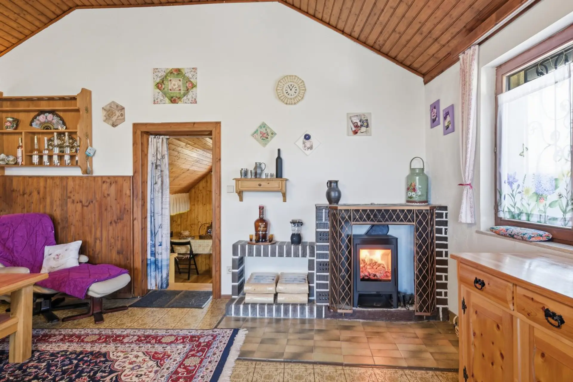 Im Außenbereich finden Sie eine Toilette, während der Aufenthaltsraum mit Schwedenofen für wohlige Behaglichkeit sorgt. Selbstverständlich sind Strom (230 V), Wasseranschluss und Senkgrube vorhanden.