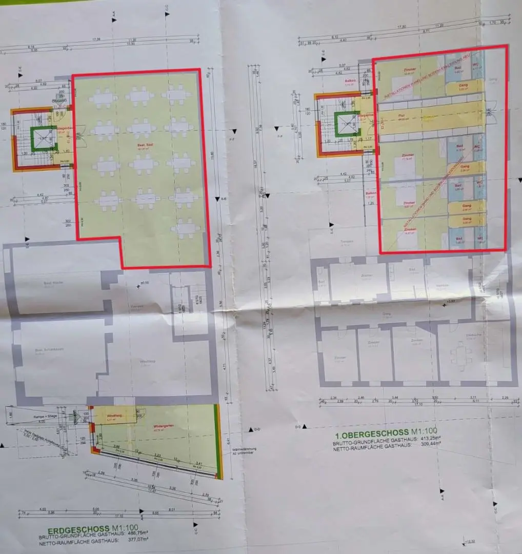Die Obergeschosse inkl. dem Veranstaltungssaal können vorbehaltlich einer Genehmigung separat erworben werden.