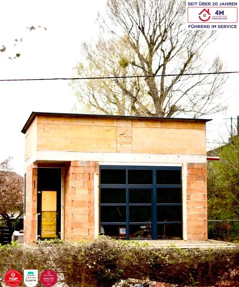 Angeboten wird ein architektonisch geplanter Rohbau auf Eigengrund – eine absolute Seltenheit in solchen Siedlungen.