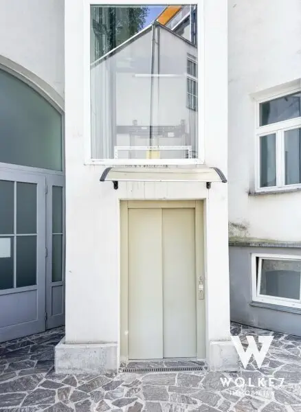 Barrierefreiheit möglich: Treppe ins Obergeschoß kann durch hydraulischen Aufzug ersetzt werden