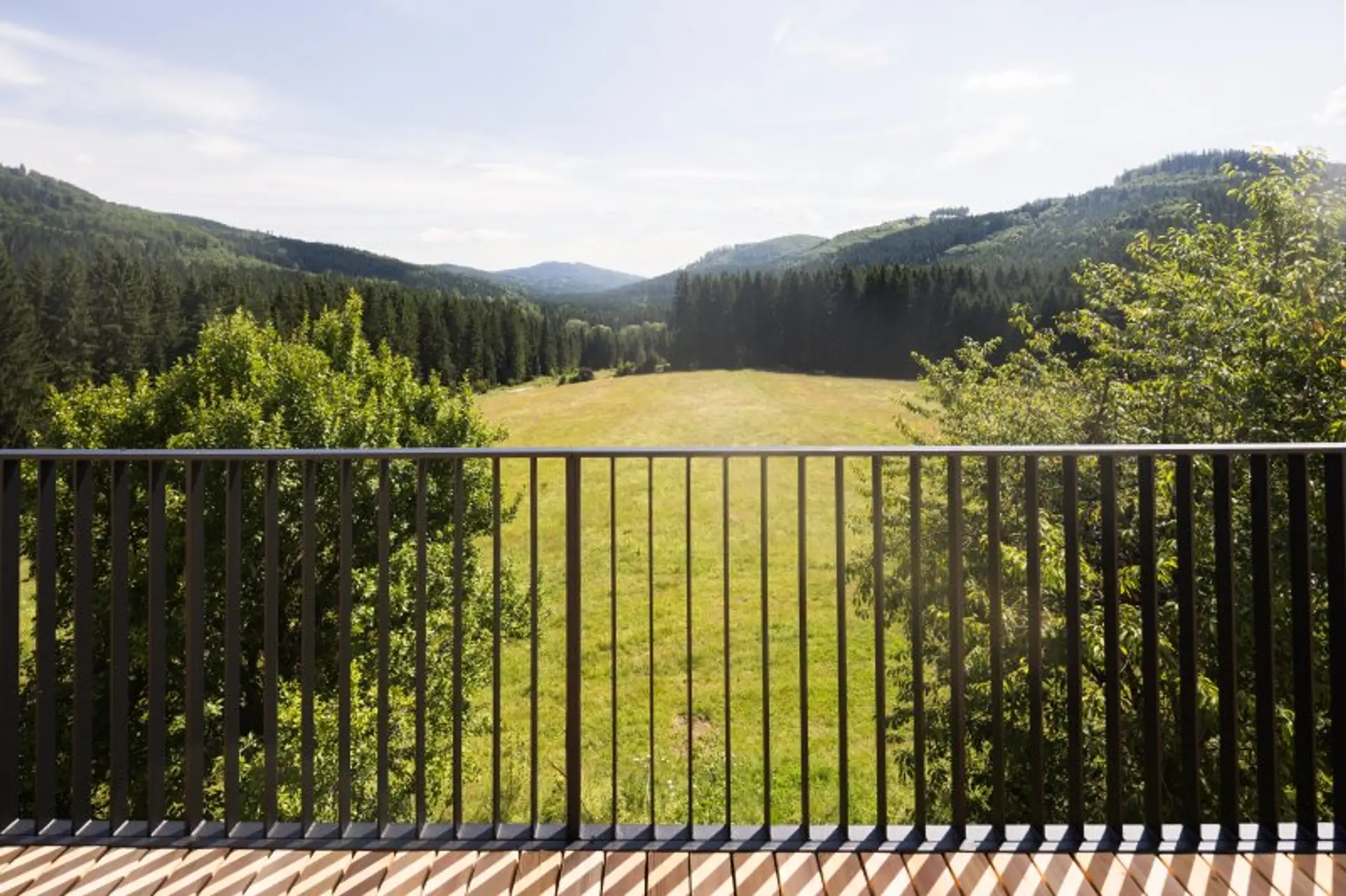 Im Zuge der Renovierung wurde eine neue Pelletsheizung zur Beheizung aller Wohnräume mittels Heizkörper installiert. In den Schlaf-und Wohnräumen wurden neue Fichtendielenböden verlegt und jedes Stockwerk verfügt nun über eine neue, vollausgestattete Küche sowie neu eingerichtete Bäder und WC´s. Die beiden rund 70 m² großen Hauptwohnräume bieten einen Ausgang auf den vorgelagerten Balkon. Vom Balkon, aber auch durch die licht- und sichtspenden Holzfenster der beiden großen Wohnräume hindurch, hat man einen schönen Blick gen Osten über die große Waldwiese und übergehend in die hügelige Waldlandschaft des Nordwaldes.