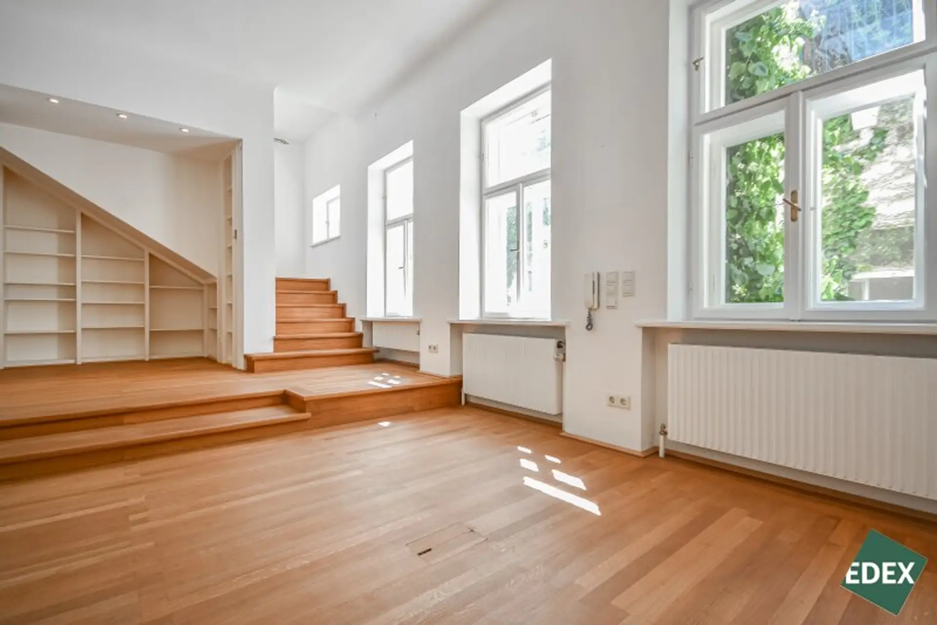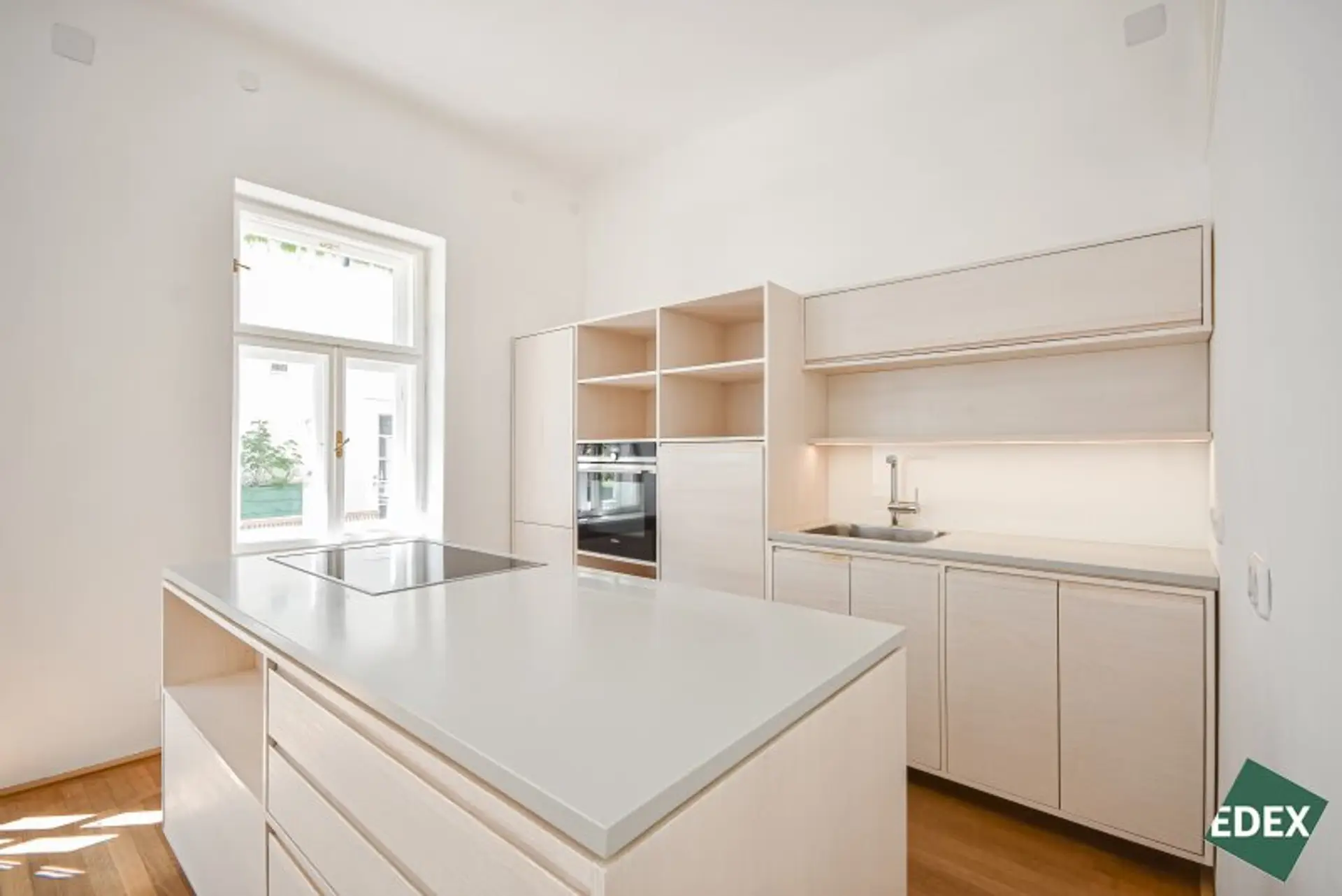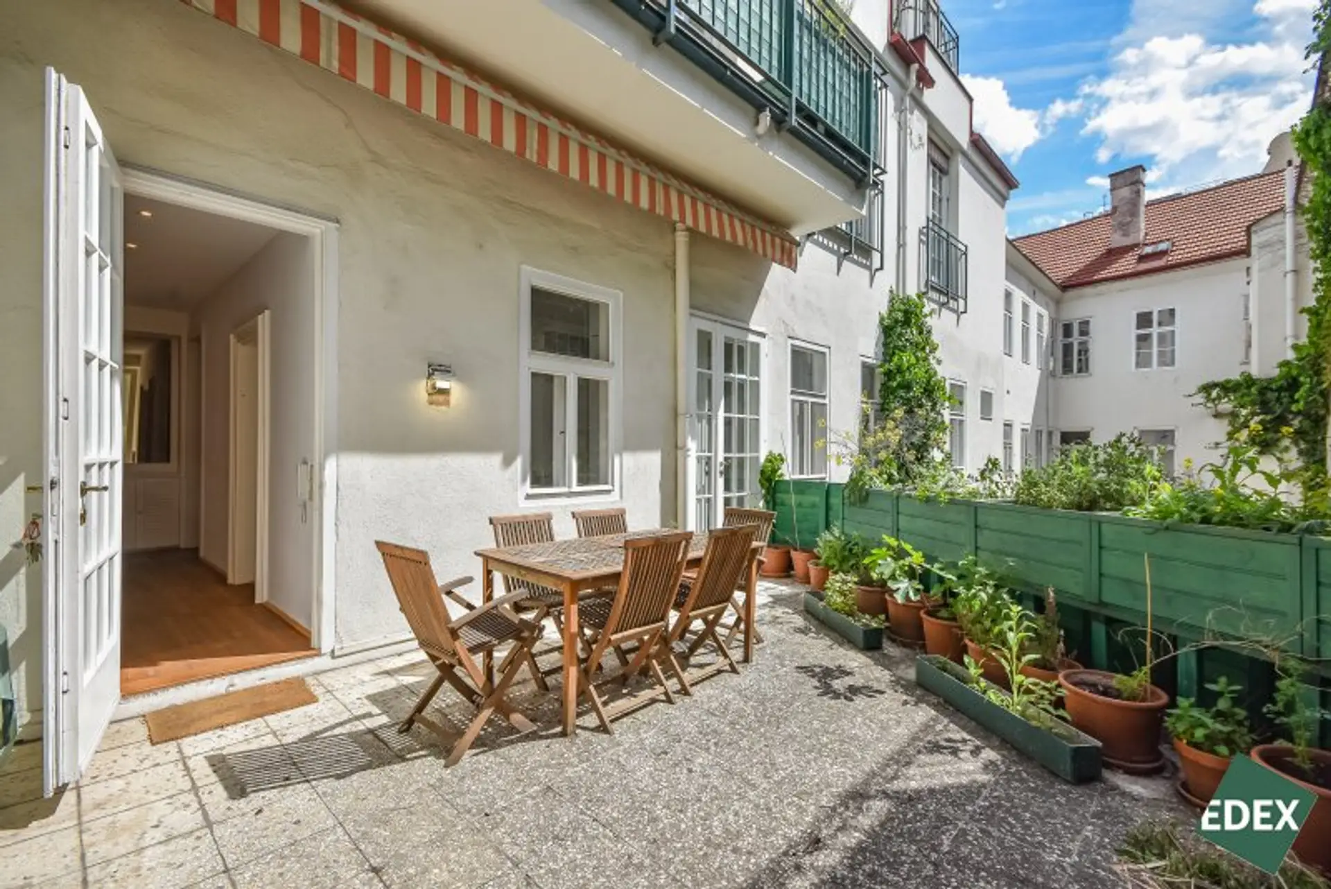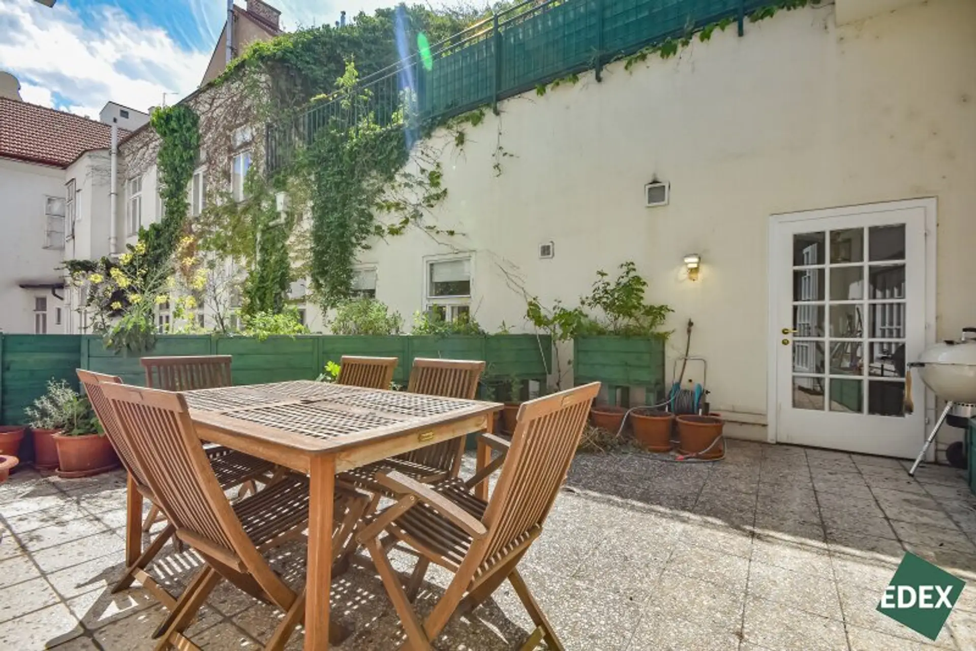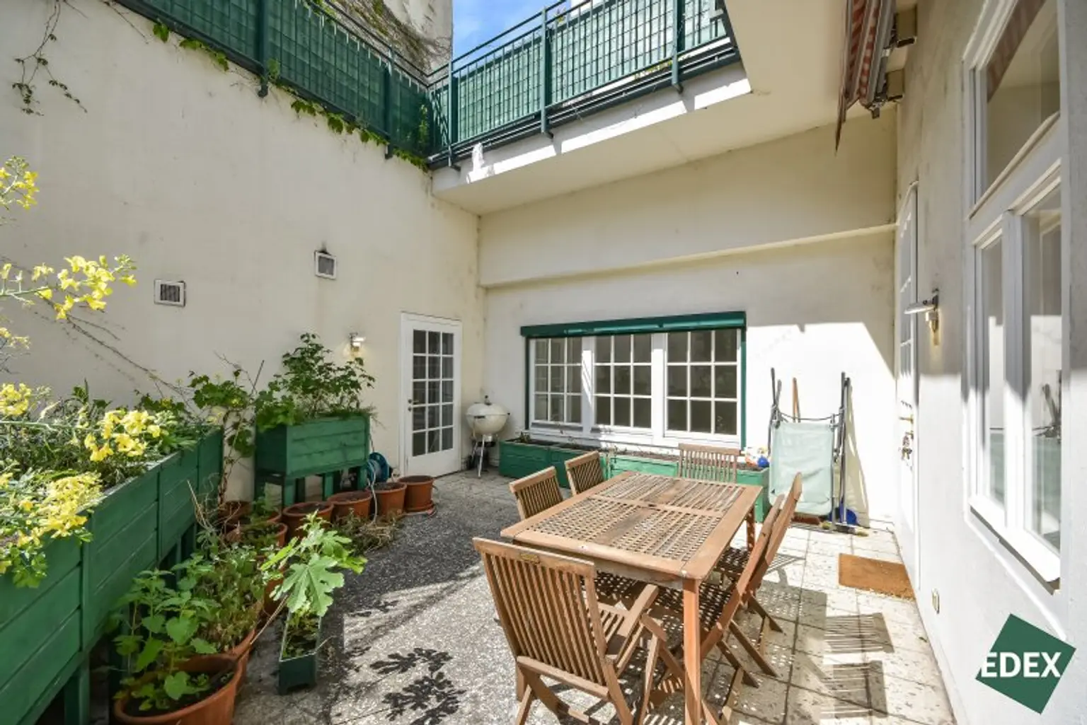 Die ca. 121 m² große Wohnung befindet sich im 1.Stock (ohne Lift) eines Altbaus auf der Neulerchenfelder Straße nahe der Josefstädter Straße im 16. Wiener Gemeindebezirk. Die Wohnung verfügt über einen großen Vorraum mit Einbaukästen und einer Gardarobe, eine separate Gäste-Toilette direkt am Eingang und ein Badezimmer mit Badewanne, Dusche, Doppelwaschbecken und einer weiteren Toilette. Im linken Abschnitt der Wohnung befindet sich ein Schlafzimmer, ein großer Schrankraum mit einem begehbarem Kleiderschrank und einem Wirtschaftsraum mit Waschmaschinen-Anschluss, Spüle, zwei Herdplatten und Einbaukästen die für zusätzlichen Stauraum sorgen. Im rechten Teil der Wohnung befindet sich eine große Wohnküche mit moderner Ausstattung (Kochinsel, Herd, Ofen, Kühlschrank, Geschrirrspüler), welche neben dem Vorrraum ebenfalls Zugang zur Terrasse bietet. Hinter der Küche befindet sich das große Wohnzimmer, in dem sich ein Kamin befindet. Geheizt wird mit einer Gasetagenheizung. Die gesamte Wohnung ist in den ruhigen und begrünten Innenhof ausgerichtet.
