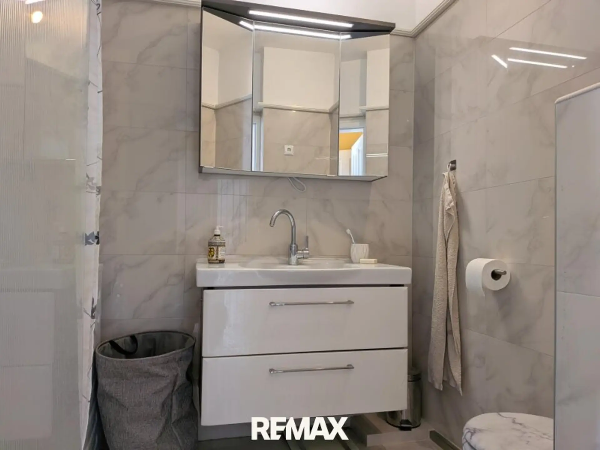 Die Wohnung präsentiert sich in einem modernen Design mit eleganten Fliesen in edler Marmoroptik, die ein luxuriöses Ambiente schaffen. Dank der hellen, sonnigen Lage im 4. Obergeschoss und den großen Fensterflächen profitieren Sie nicht nur von lichtdurchfluteten Räumen, sondern auch von sehr geringen Heizkosten.