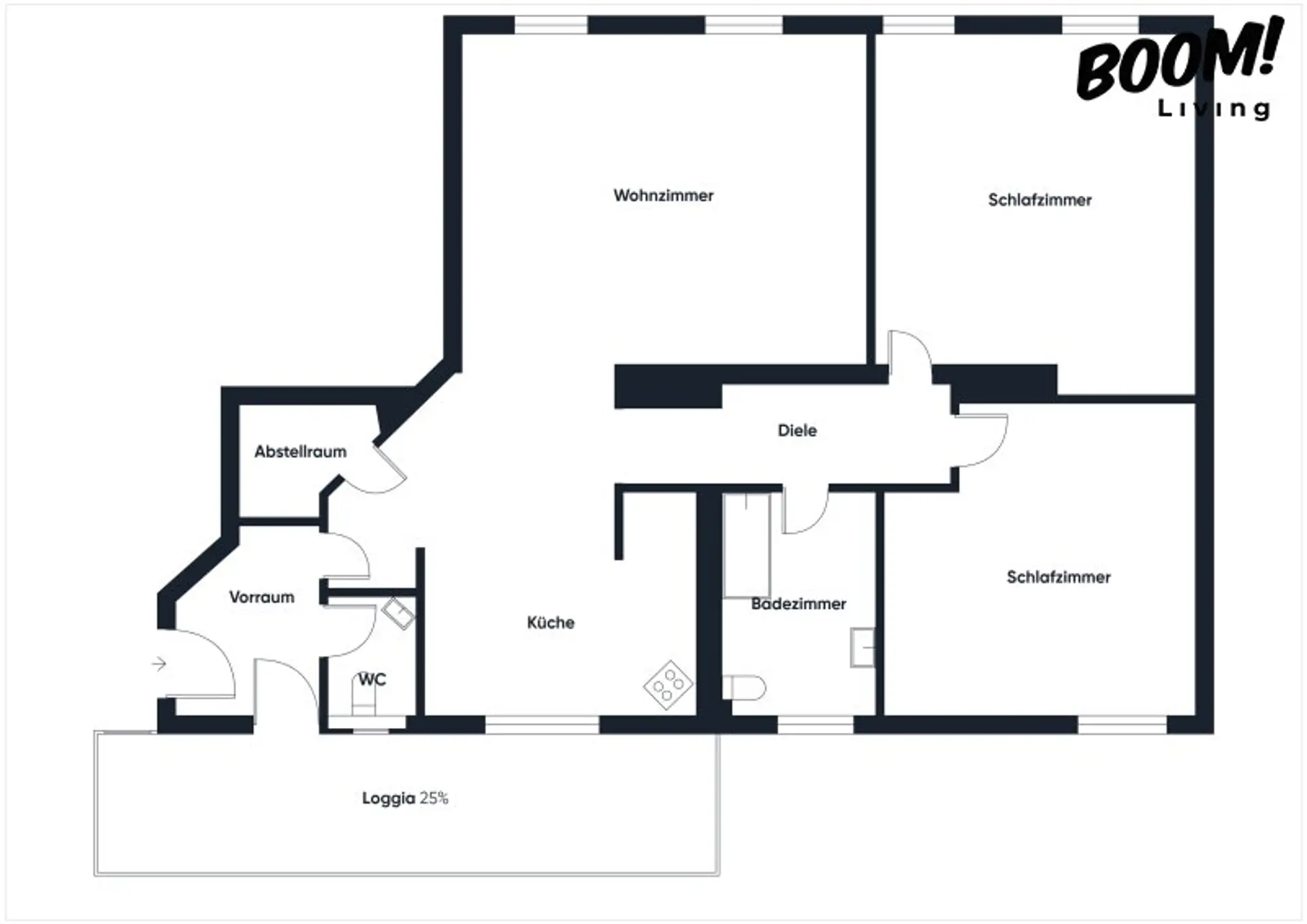 *Hinweis: Die Originalfotos zeigten Möbel und wurden mittels KI digital möbelfrei bearbeitet. Die Wohnung wird unmöbliert übergeben.