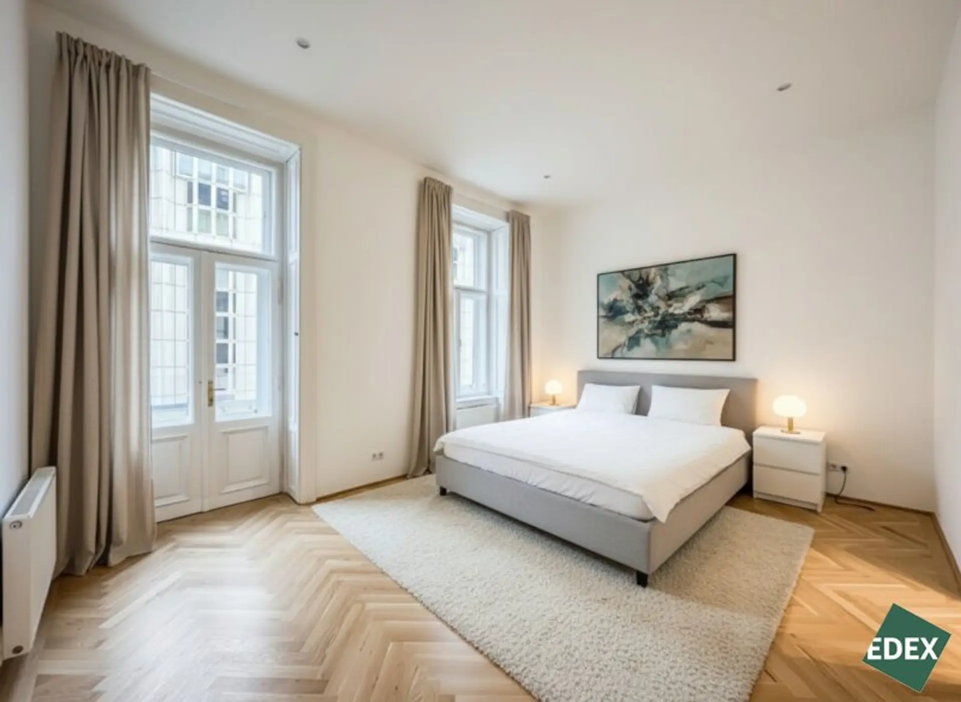 Die Wohn- bzw. Schlafräume sind mit hochwertigen Fischgrätparkett und die Nassräume mit modernen Fließen ausgestattet.