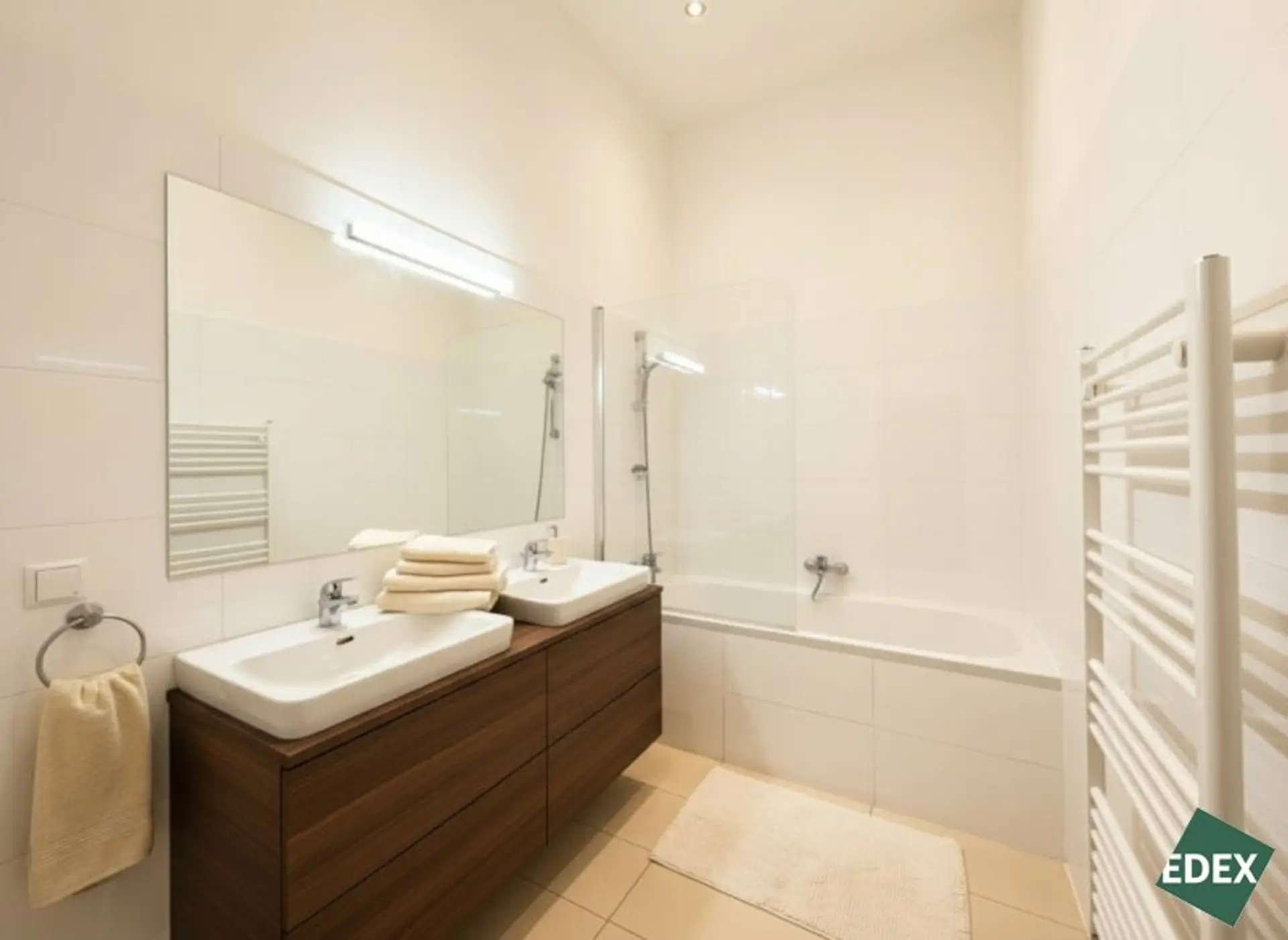* Badezimmer mit Doppelwaschbecken und Badewanne