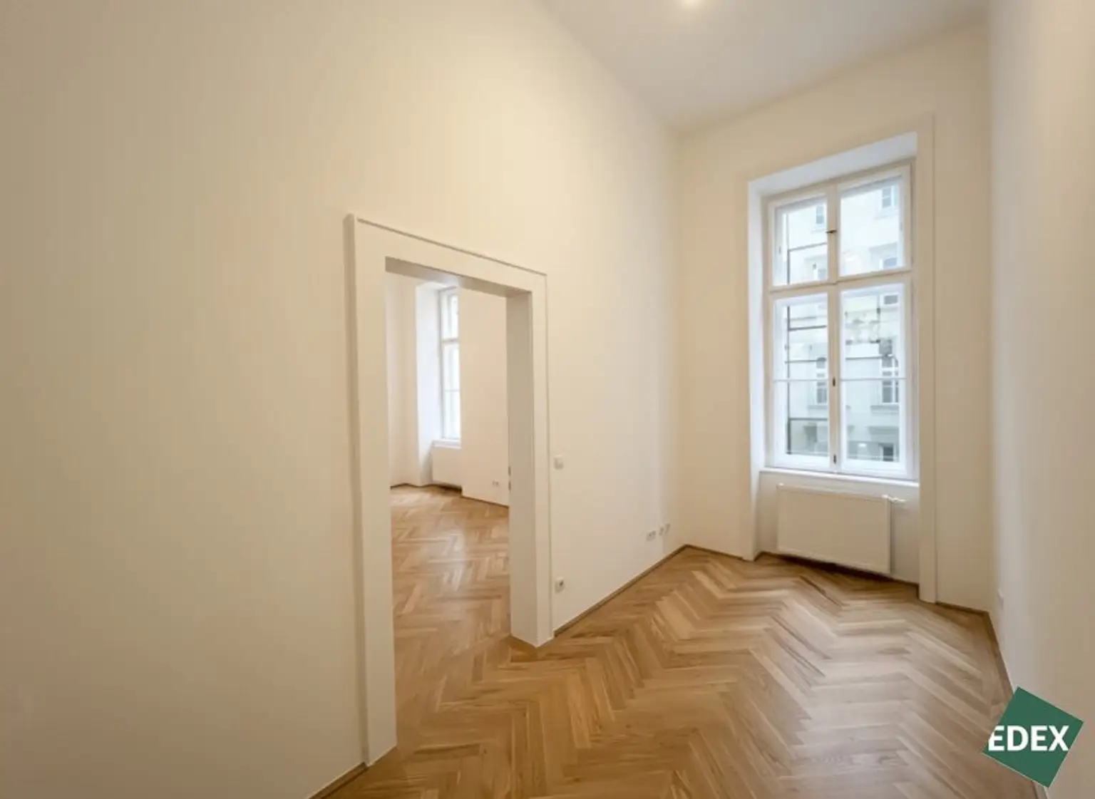 Die Wohn- bzw. Schlafräume sind mit hochwertigen Fischgrätparkett und die Nassräume mit modernen Fließen ausgestattet.