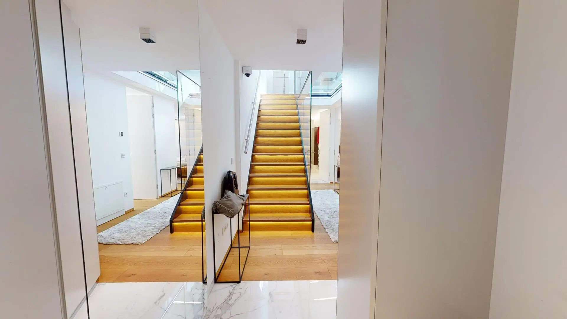 Die durchdachte Raumaufteilung über drei Ebenen, kombiniert mit der privaten Terrasse, schafft ein einzigartiges Wohngefühl – ideal für anspruchsvolle Stadtliebhaber, die urbanes Leben mit Ruhe und Exklusivität verbinden möchten.