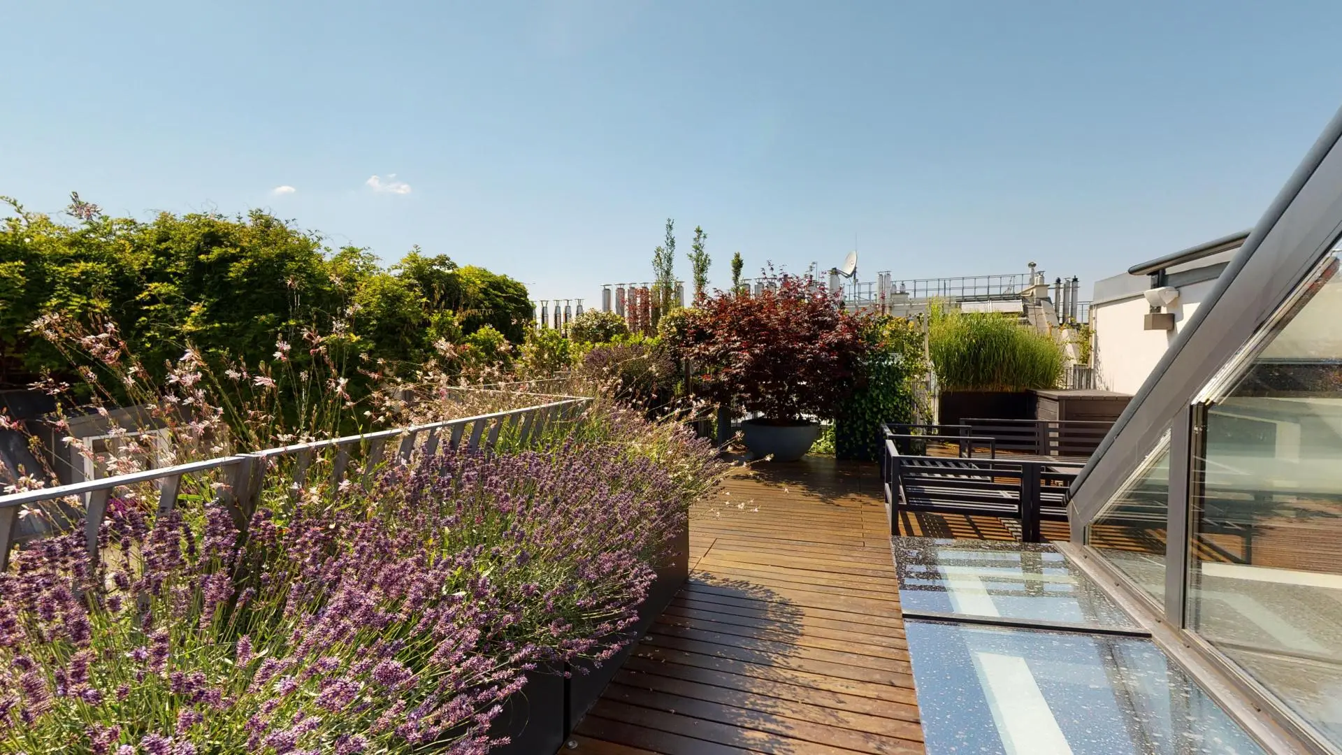 Ein besonderes Highlight ist die großzügige, begrünte Dachterrasse mit integriertem Whirlpool – ein seltenes Refugium mitten im Zentrum Wiens und ein echtes Unikat.