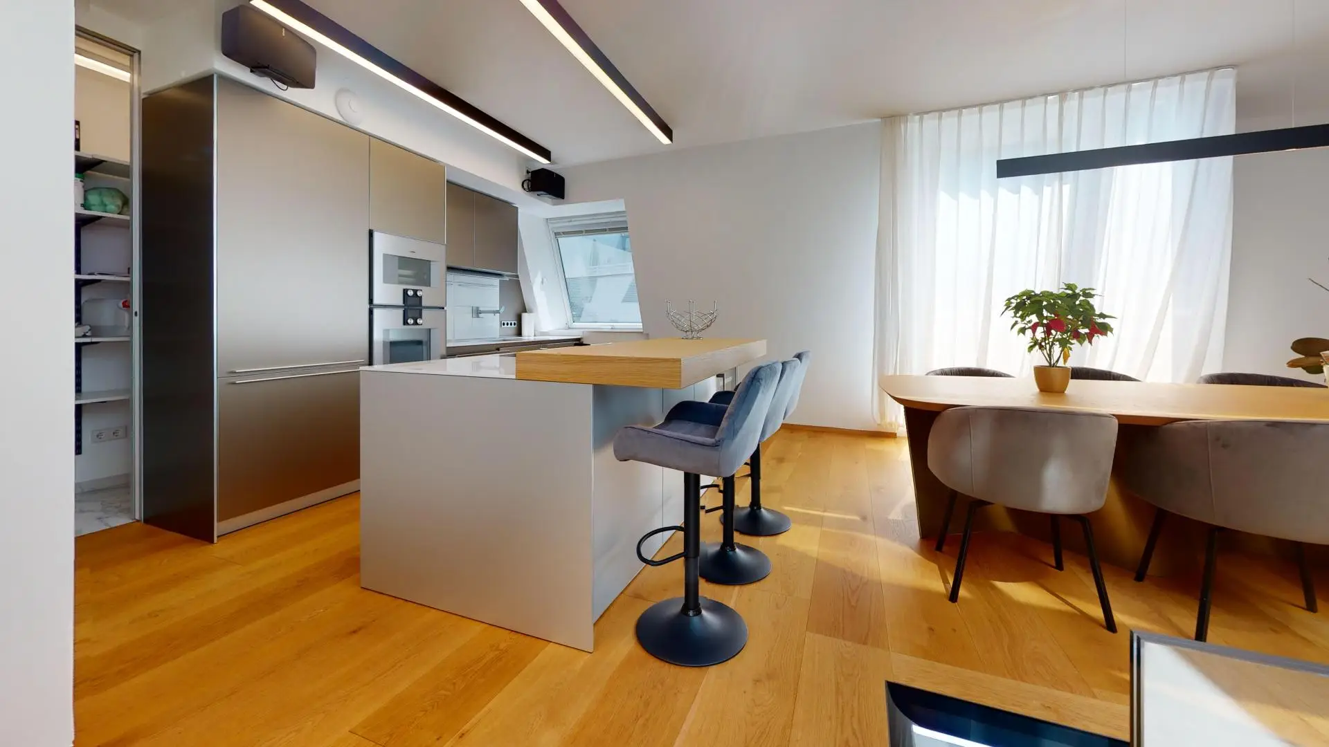 Dieses außergewöhnliche Penthouse befindet sich in einem aufwendig kernsanierten Gründerzeithaus und vereint historischen Charme mit modernstem Wohnkomfort. Auf rund 107 m² Wohnfläche präsentiert sich eine hochwertige Ausstattung auf höchstem Niveau.