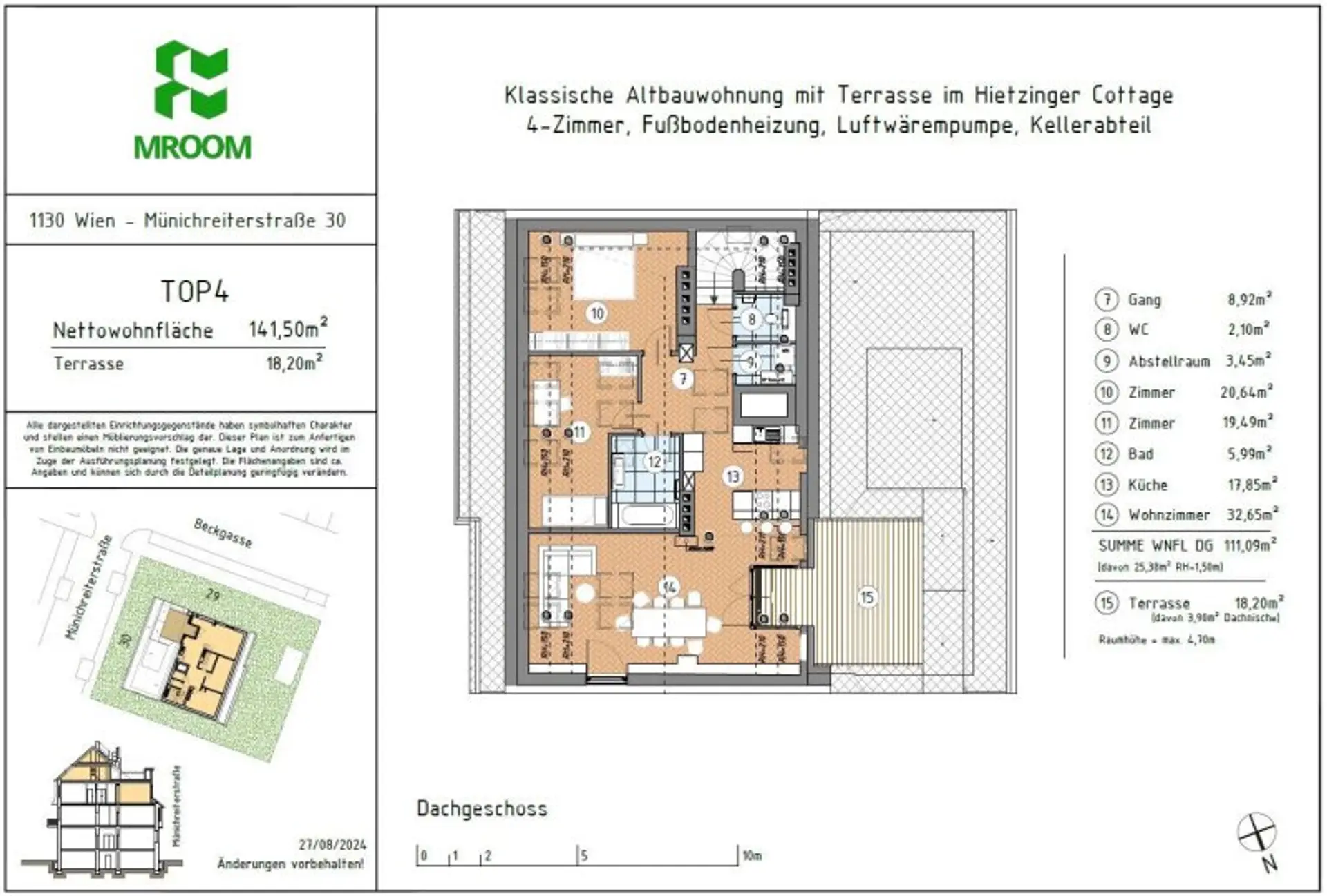 Die gegenständliche Wohnung befindet sich im Neubaubereich des Haus im Dachgeschoss und verfügt über eine Wohnfläche von ca. 142 m² und eine ca. 18 m² große Westterrasse.