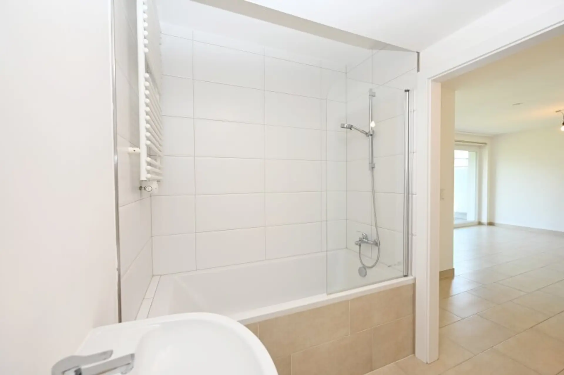 * Bad mit Wanne, Duschverglasung und Waschbecken
