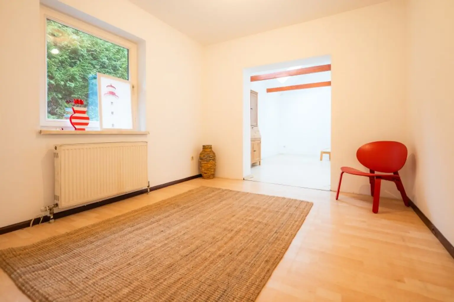 Mit einer großzügigen Fläche von 124 m² und vier lichtdurchfluteten Zimmern bietet dieses Haus ausreichend Platz für Ihre individuellen Wohnbedürfnisse. Der große, offene Wohnraum schafft eine einladende Atmosphäre und viel Helligkeit. Die beiden Zimmer im Erdgeschoss sind etwa gleich groß und eignen sich perfekt als Kinderzimmer und/oder Büro(s). Im Erdgeschoss sind auch die Küche, ein Badezimmer (Dusche) und ein WC untergebracht.