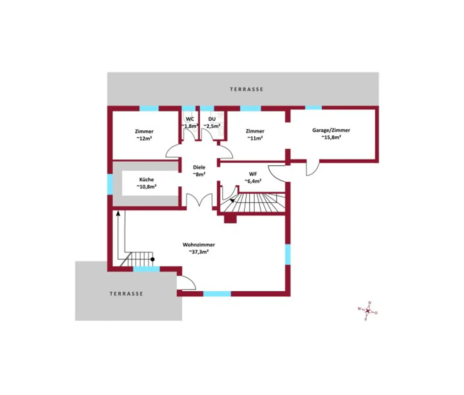 Der Grundriss des Hauses entspricht modernen Anforderungen und es sind keine gröberen Umbauarbeiten notwendig. Kalkulieren Sie aber ein, dass einige Modernisierungsarbeiten für das Haus anfallen werden. (Bäder, Küche, Fenster, Holzterrasse, Zaun).