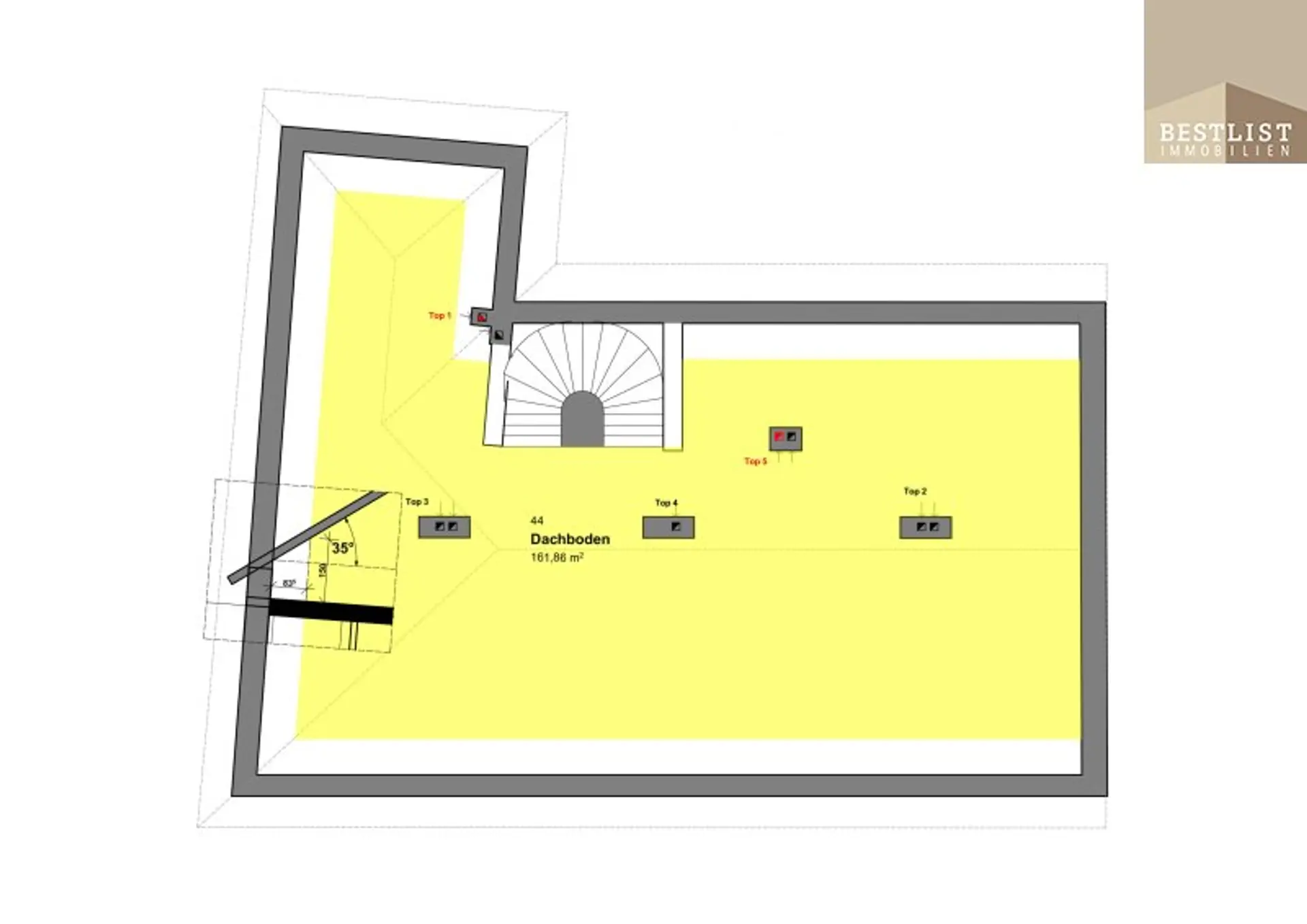 Der Rohdachboden verfügt über eine Fläche von ungefähr 161,86 m2.