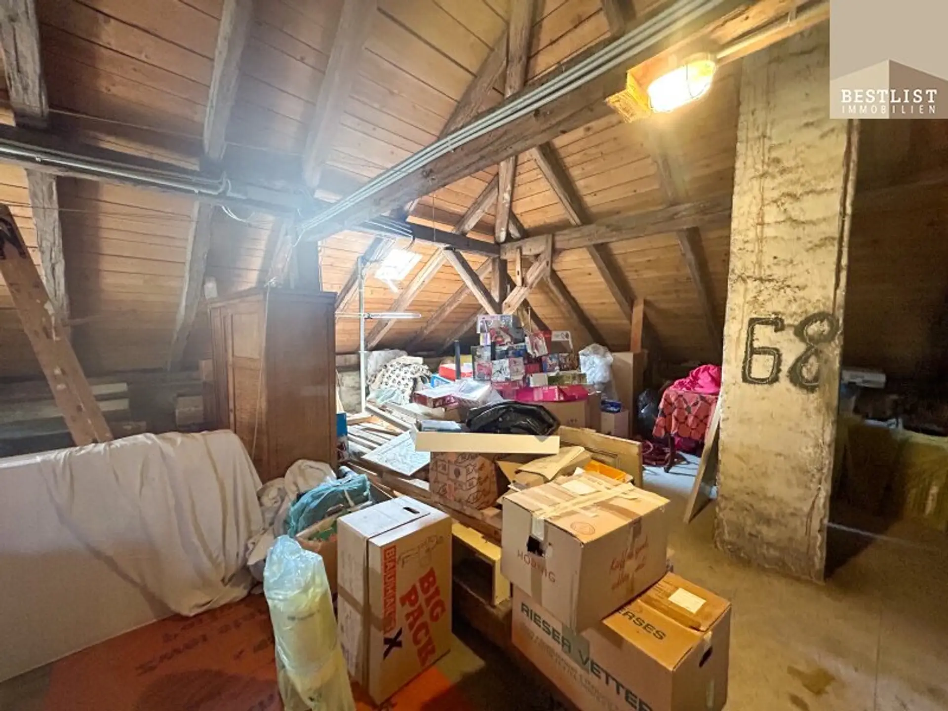 Der Dachboden ist sehr gut ausbaubar, sowohl im Ganzen, als auch für 2 Wohneinheiten. In der Begehung mit dem Bundesdenkmalamt wurde auch die Möglichkeit zur Schaffung einer Terrasse, nicht einsichtig aus dem öffentlichen Gut, in den Raum gestellt. Ebenso ist der Einbau eines Liftes - nach Absprache mit dem Bauamt möglich.