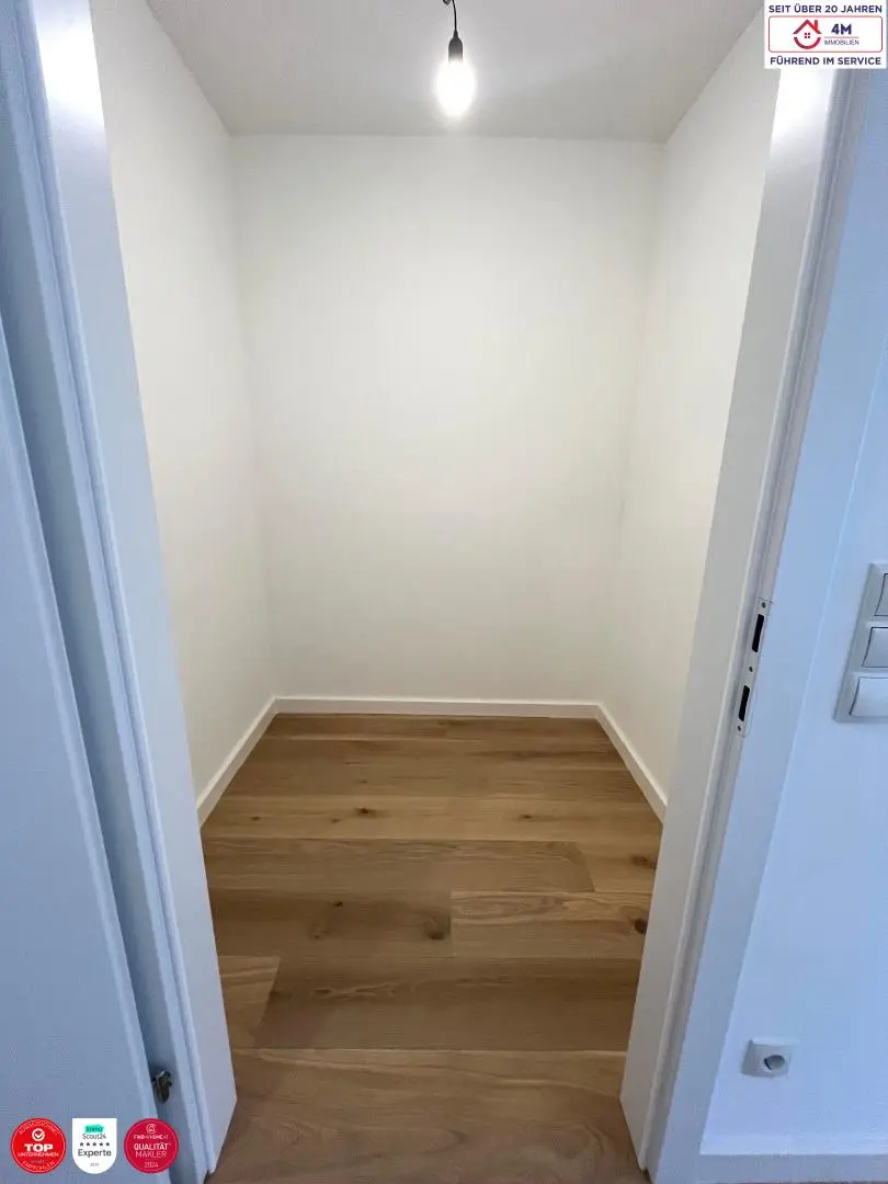 Bereits beim Betreten empfängt Sie ein großzügiger Vorraum mit zahlreichen maßgefertigten Einbauschränken, die optimalen Stauraum bieten. Rechterhand befindet sich das erste Zimmer, welches über ein kleines Büro erreichbar ist. Linkerhand erstreckt sich die charmante Wohnküche mit hochwertiger Einbauküche. Ebenfalls vom Vorraum aus zugänglich ist das stilvolle Badezimmer mit Badewanne, Dusche und WC.