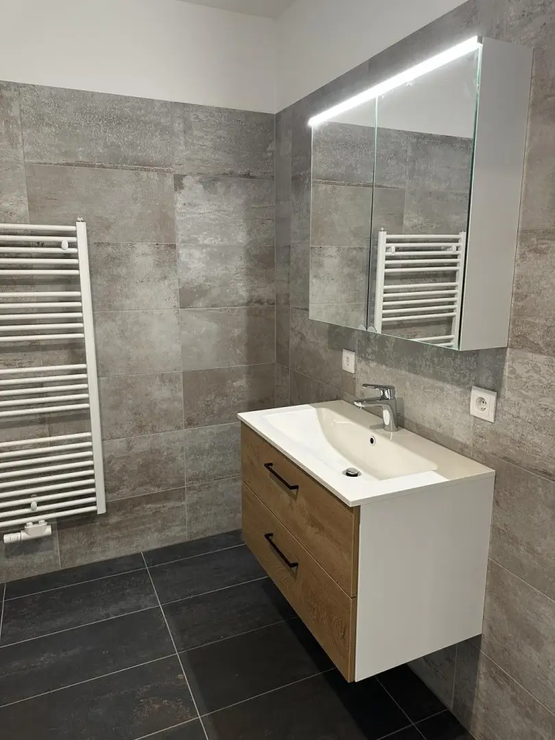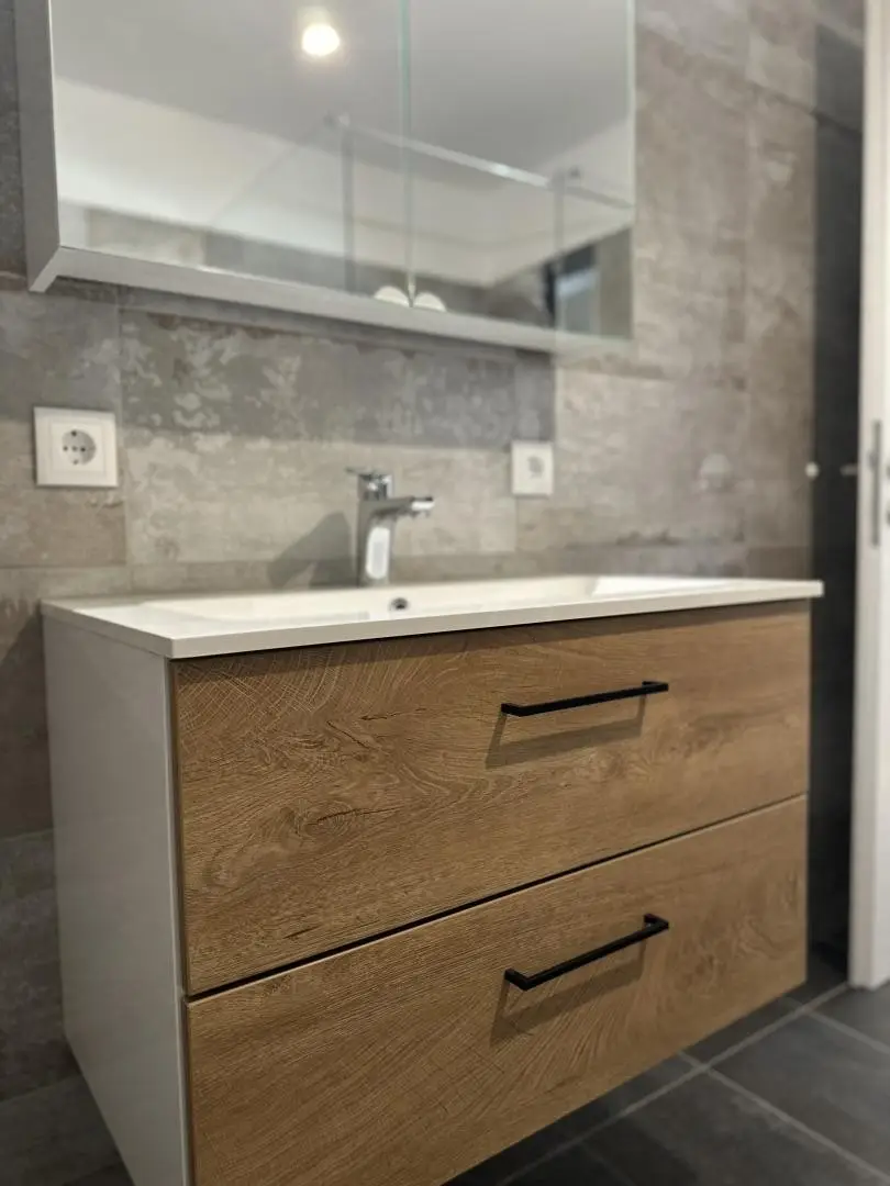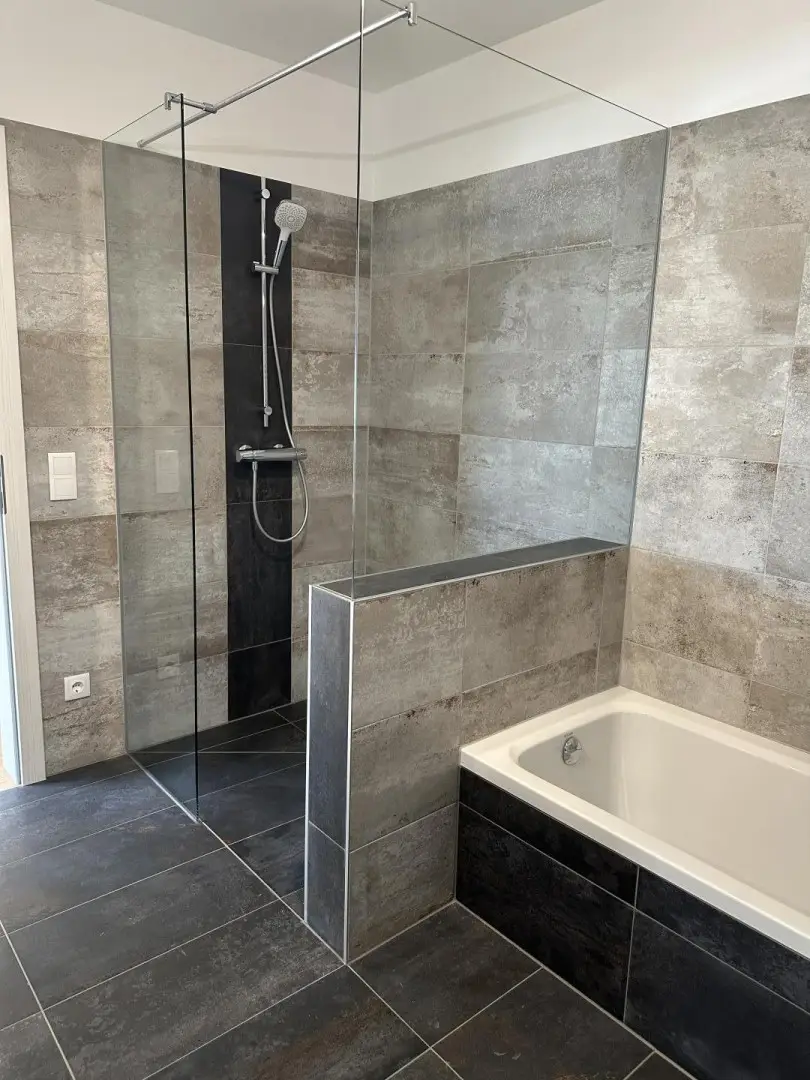 -und dem großem Badezimmer mit Wanne, Dusche sowie Waschtischunterbau u. Spiegelschrank