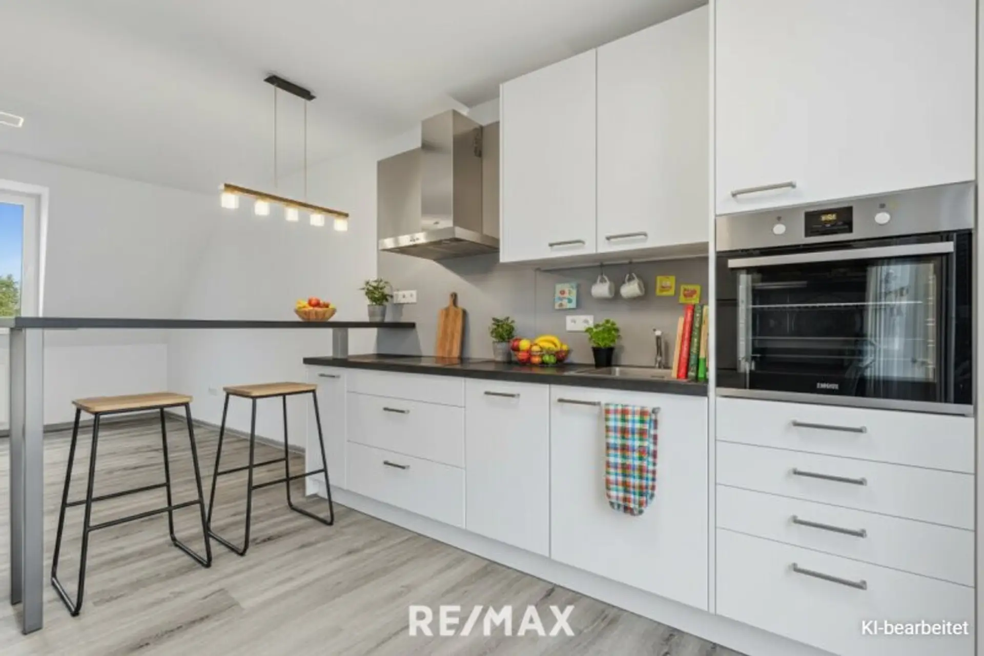 Genießen Sie die Vorzüge einer offenen Wohnküche, die mit einer modernen Einbauküche ausgestattet ist – perfekt für gesellige Abende und kulinarische Experimente. Die angenehme Etagenheizung sorgt für ein warmes Zuhause, während die Klimaanlage an heißen Sommertagen für Erfrischung sorgt.