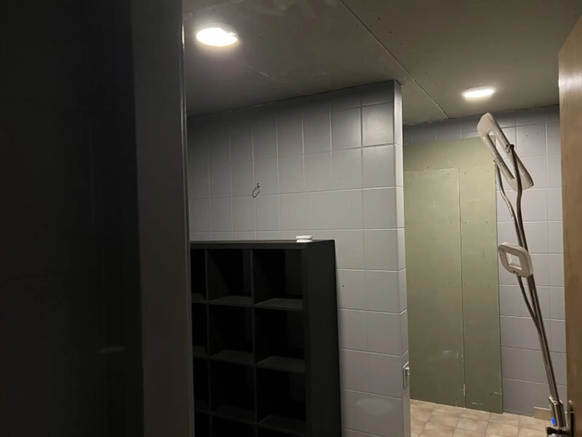 So finden Sie auf der rechten Seite das großzügige über 19 m² große Schlafzimmer mit eigenem Badezimmer und Ausgang zur Terrasse. Das Schlafzimmer ist mit zwei Pax-Kleiderschränken sowie einer Klimaanlage ausgestattet. Im Badezimmer befinden sich eine Toilette, eine Dusche, ein Handwaschbecken sowie praktische Schränke.