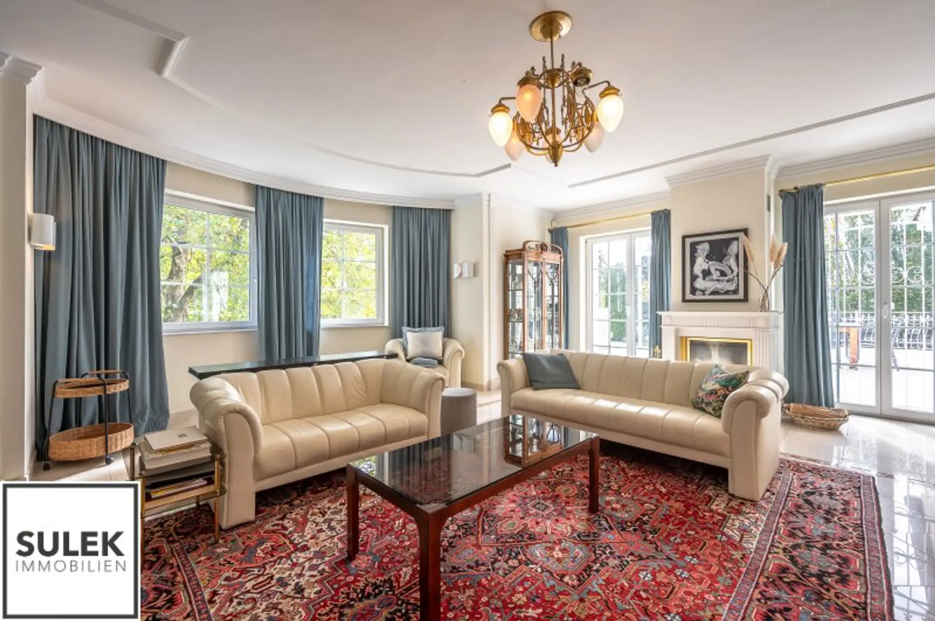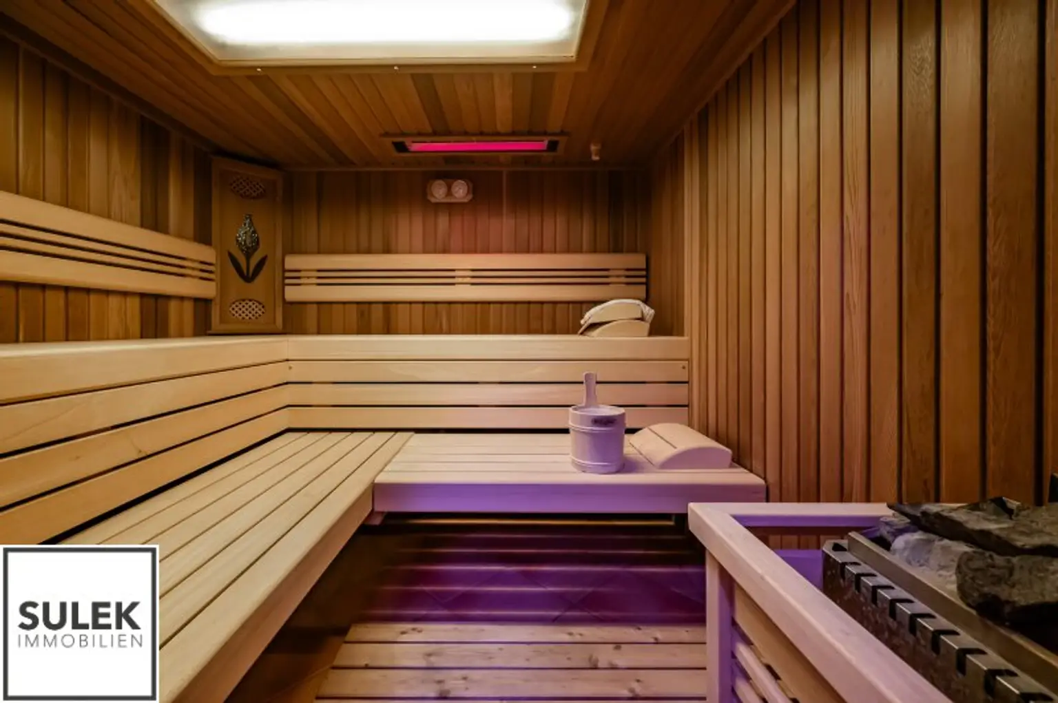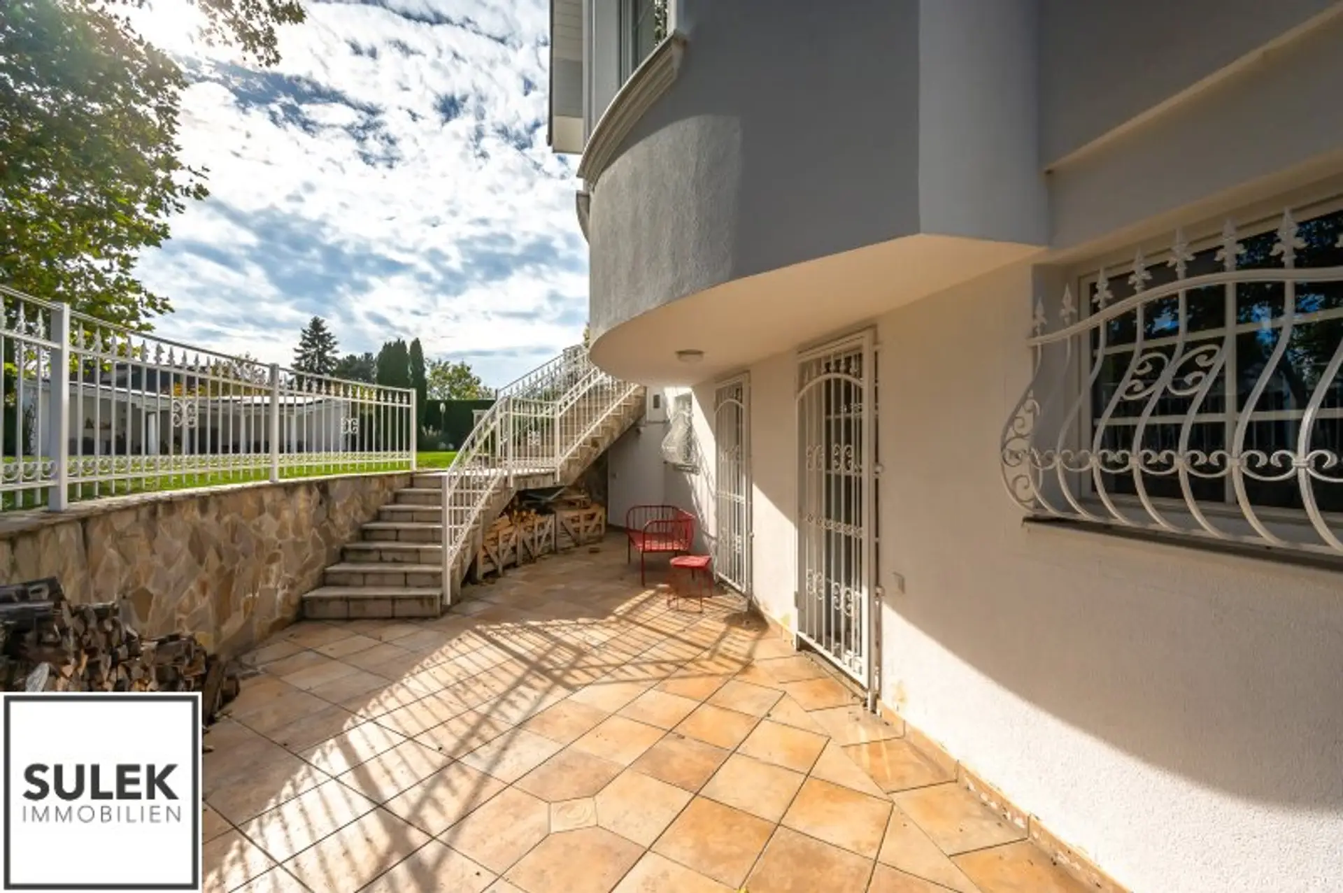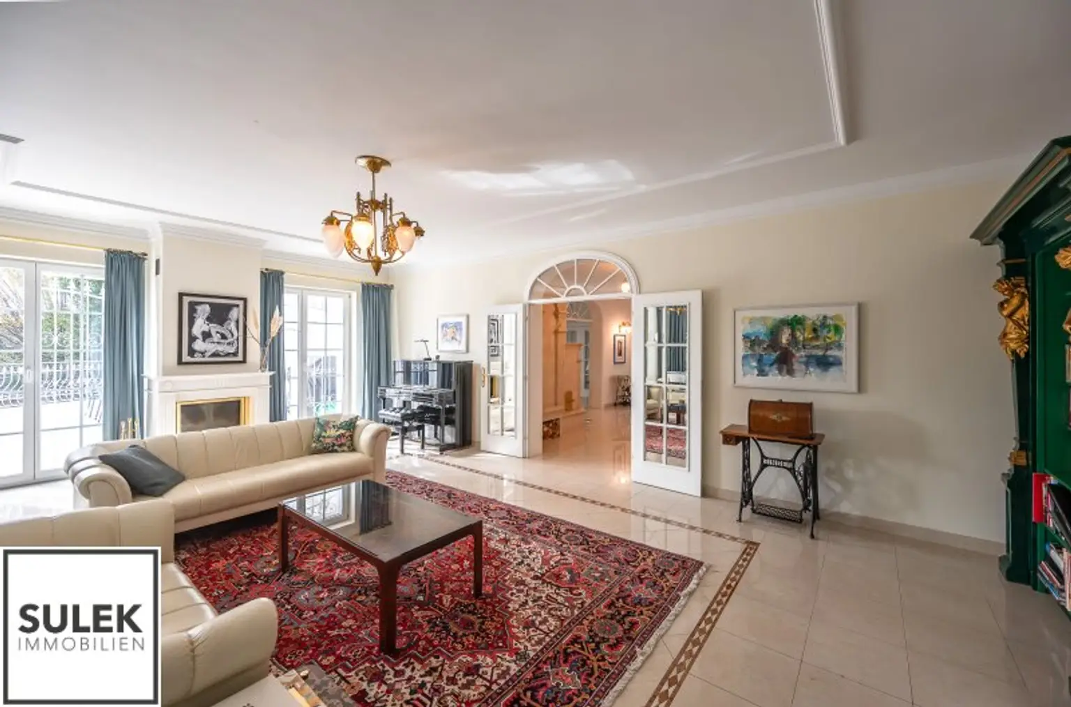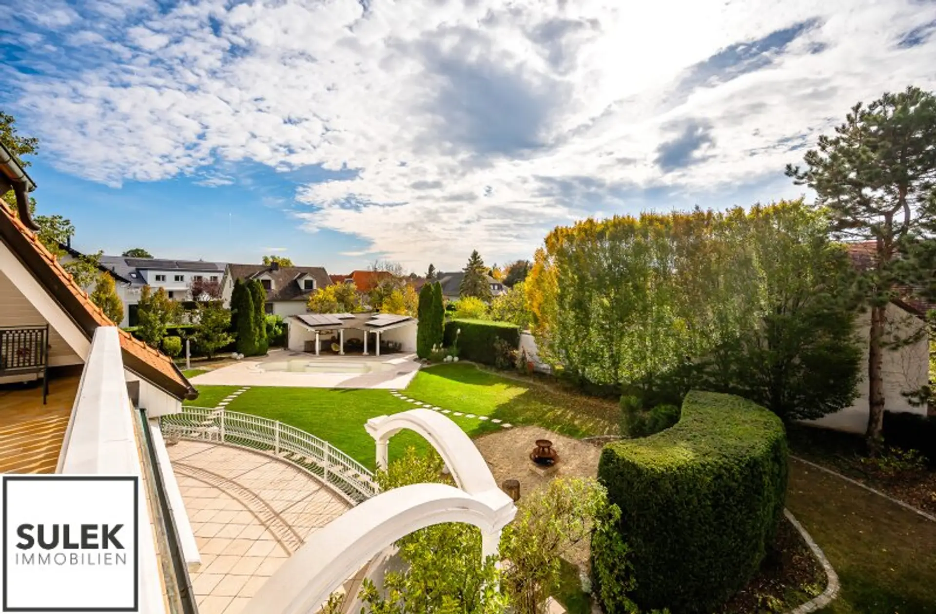 Der Garten ist ein echtes Highlight: Von Wintergarten und Wohnsalon aus betreten Sie die weitläufige Terrasse mit traumhaftem Blick in den Garten mit altem Baumbestand. Hier findet sich eine parkähnlich ausgeführte und gepflegte Begrünung. Der große Pool mit eigener Poolterrasse, Outdoor-Küche und zahlreichen überdachten Sitzgelegenheiten, schafft ein privates Urlaubsambiente. Eine charmante Feuerstelle rundet das Freizeitangebot ab.