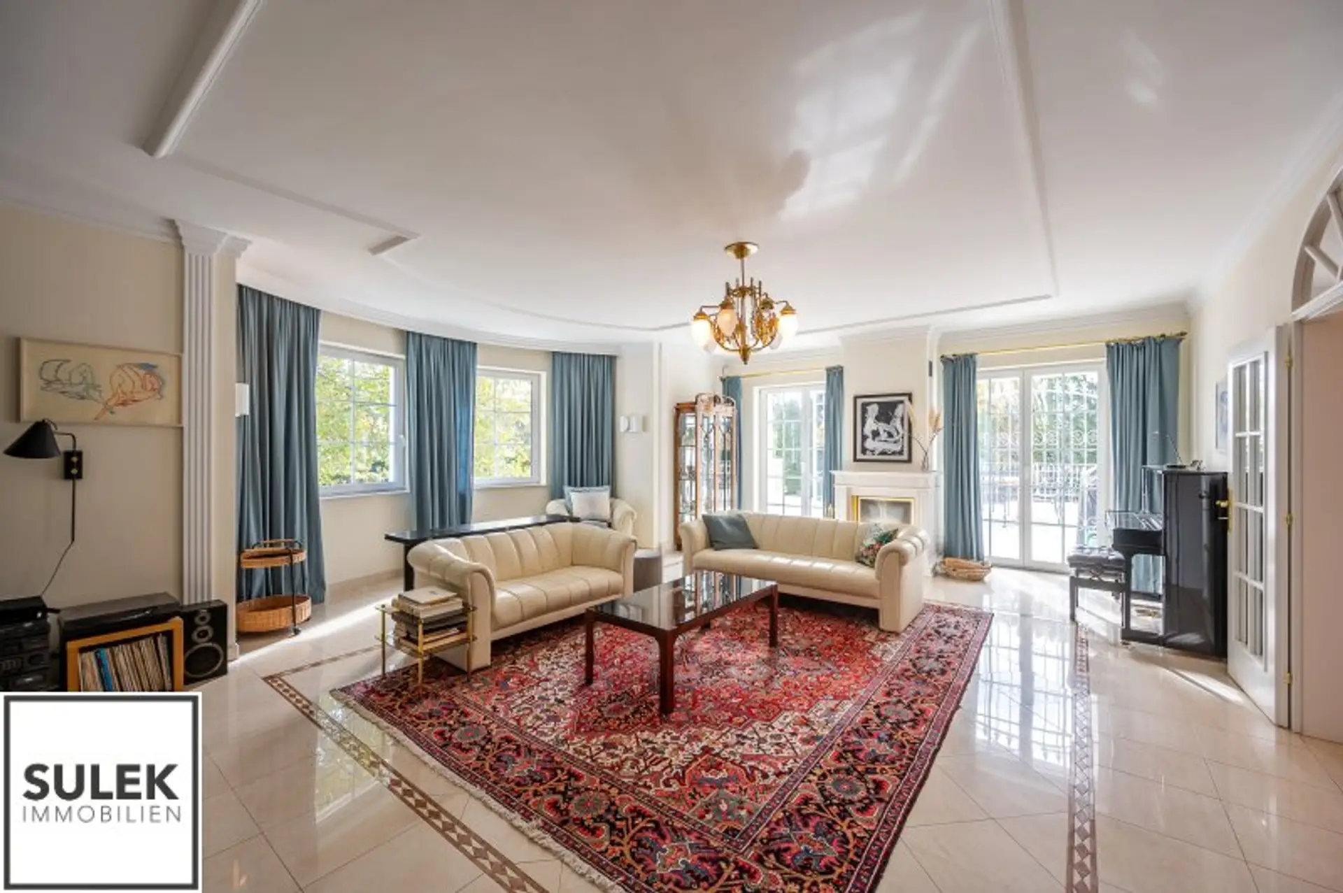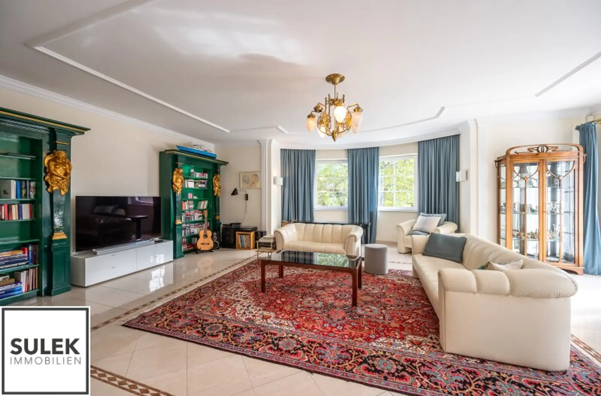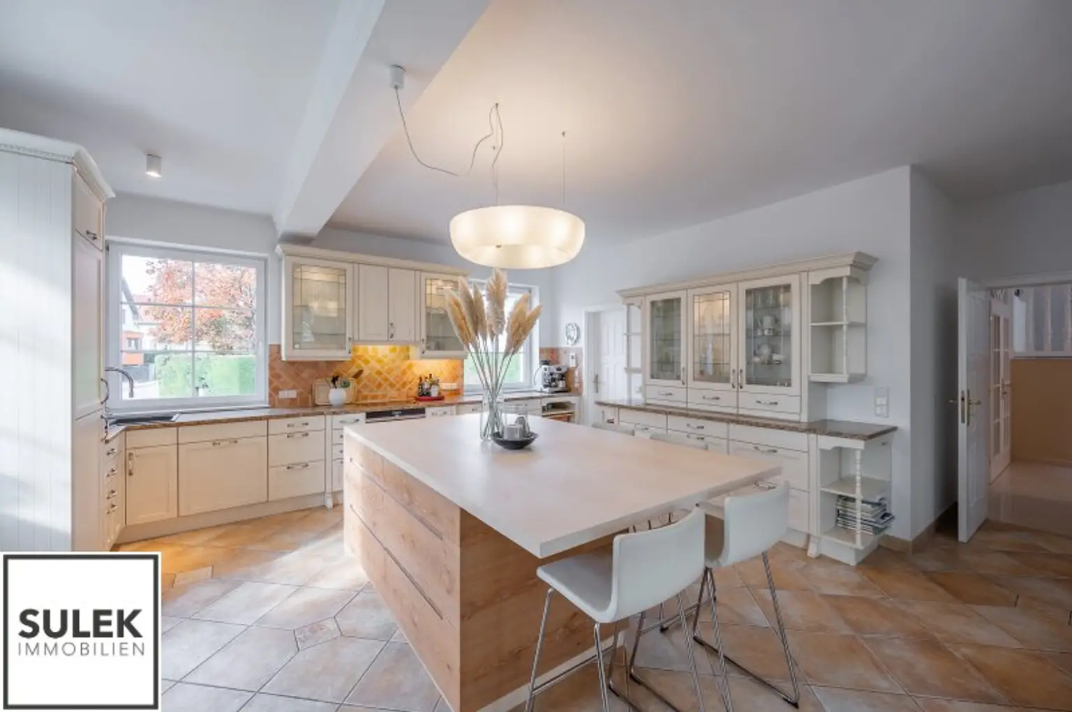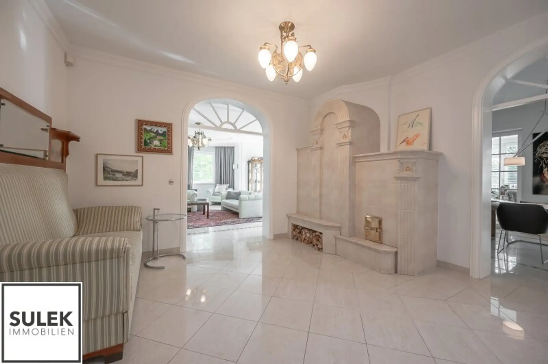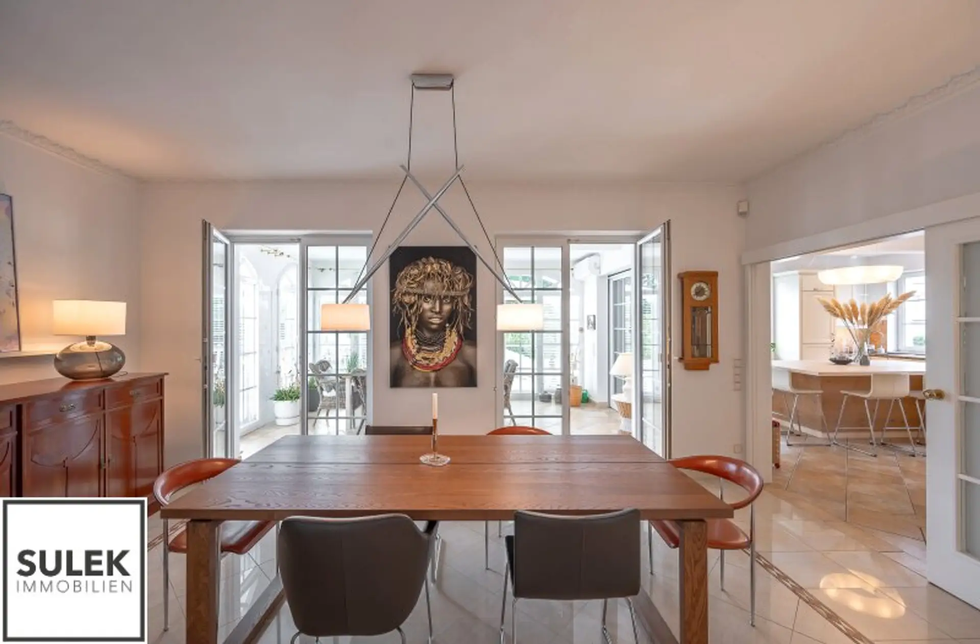 Der Garten ist ein echtes Highlight: Von Wintergarten und Wohnsalon aus betreten Sie die weitläufige Terrasse mit traumhaftem Blick in den Garten mit altem Baumbestand. Hier findet sich eine parkähnlich ausgeführte und gepflegte Begrünung. Der große Pool mit eigener Poolterrasse, Outdoor-Küche und zahlreichen überdachten Sitzgelegenheiten, schafft ein privates Urlaubsambiente. Eine charmante Feuerstelle rundet das Freizeitangebot ab.
