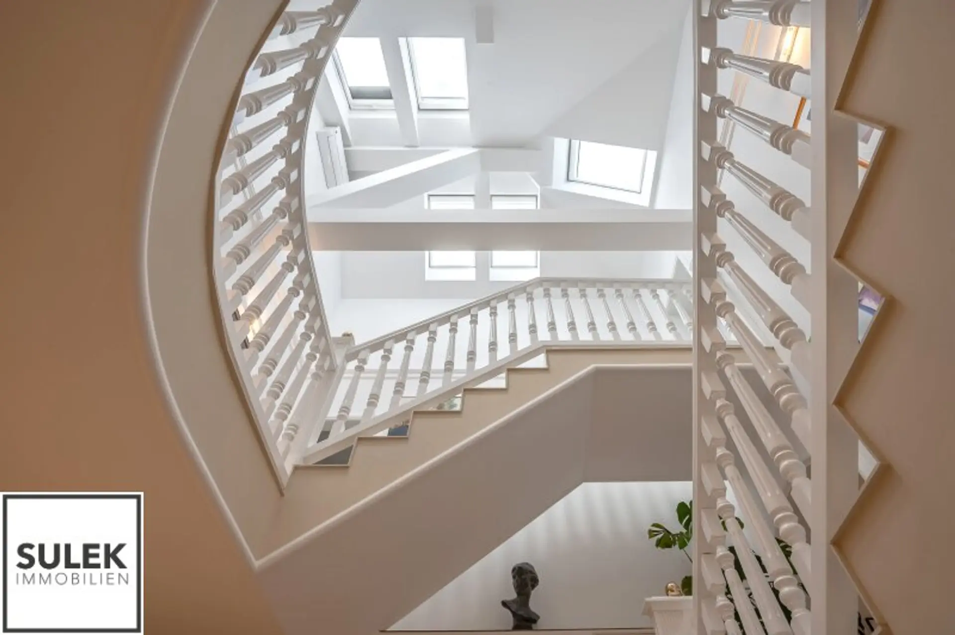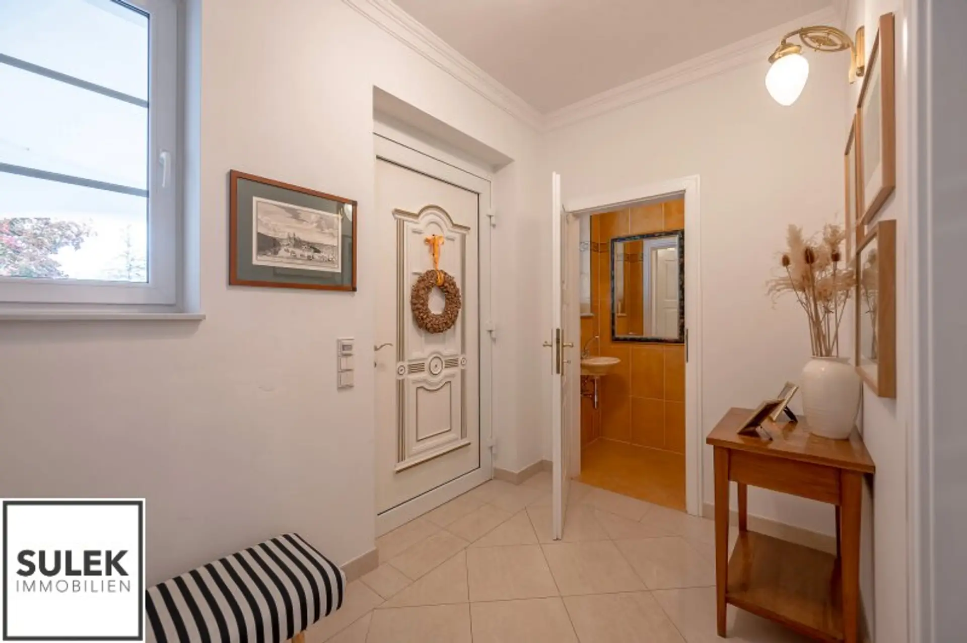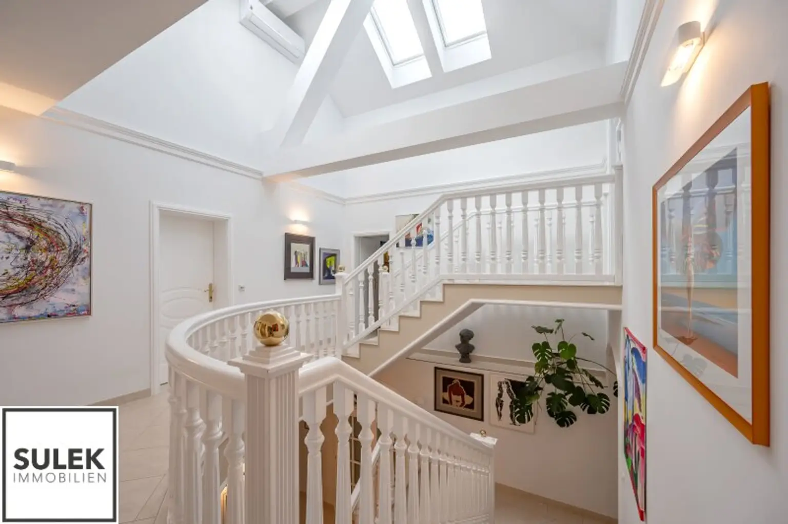 Zunächst betreten Sie einen geräumigen Eingangsbereich mit einer separaten Garderobe, sowie der Gästetoilette. Über diese gelangen Sie weiter zum offen gestalteten Stiegenhaus mit Foyercharakter und tollen Lichtverhältnissen.