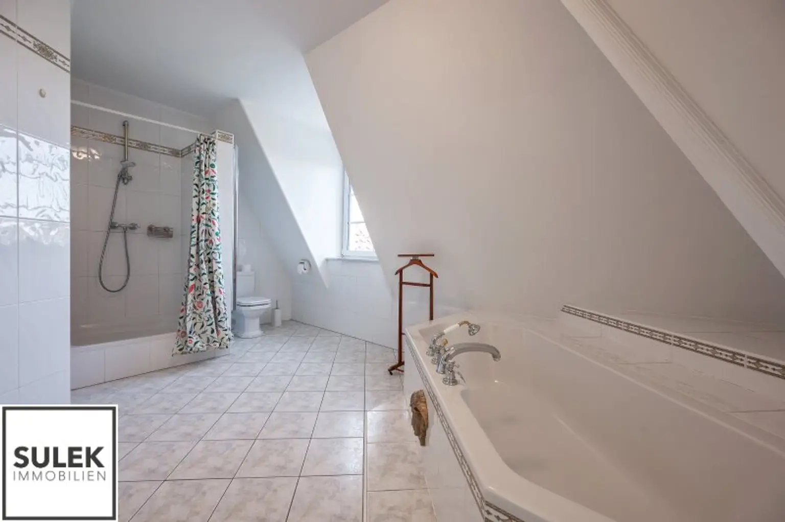 * Badezimmer (Dusche, Wanne, Toilette, Doppelwaschbecken)
