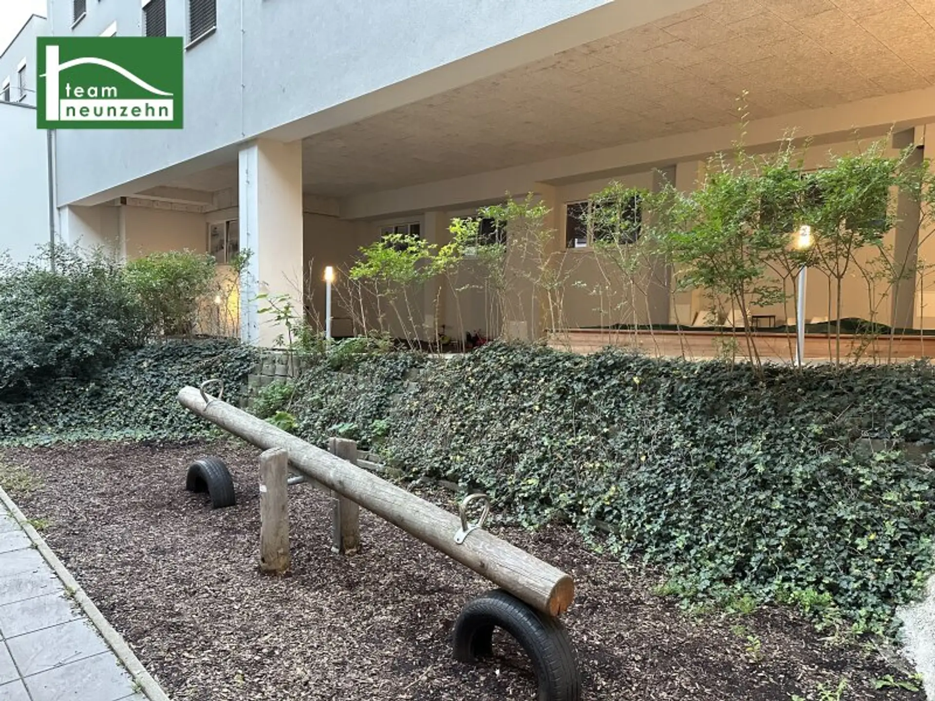 Die Anlage überzeugt durch ihr gepflegtes, familiäres Umfeld mit Fahrradraum, Paketempfangsboxen, Kellerabteil und einem kleinen Spielplatz. Dazu gibt es sowohl unter, als auch über der Wohnung keine direkten NachbarInnen, sodass von dort keinerlei störender Lärm zu erwarten ist.
