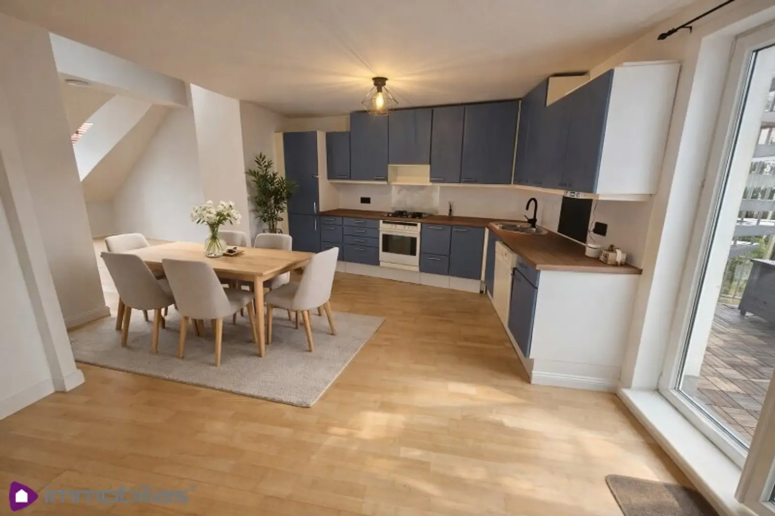 offene Küche mit Essplatz und anschließendem großzügigem, lichtdurchflutetem Wohnzimmer, gesamt ca 50,31 m²