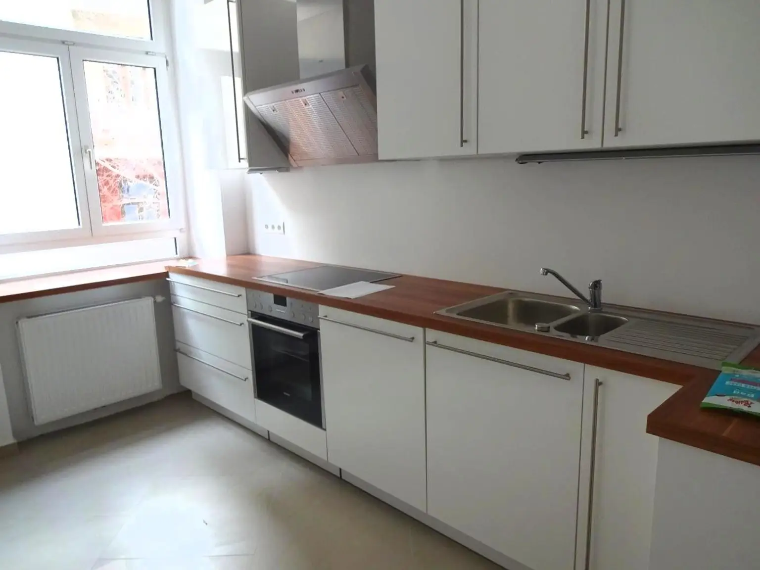 drei Zimmer, Komplettküche, zwei Bäder, zwei Toiletten, Vorzimmer.