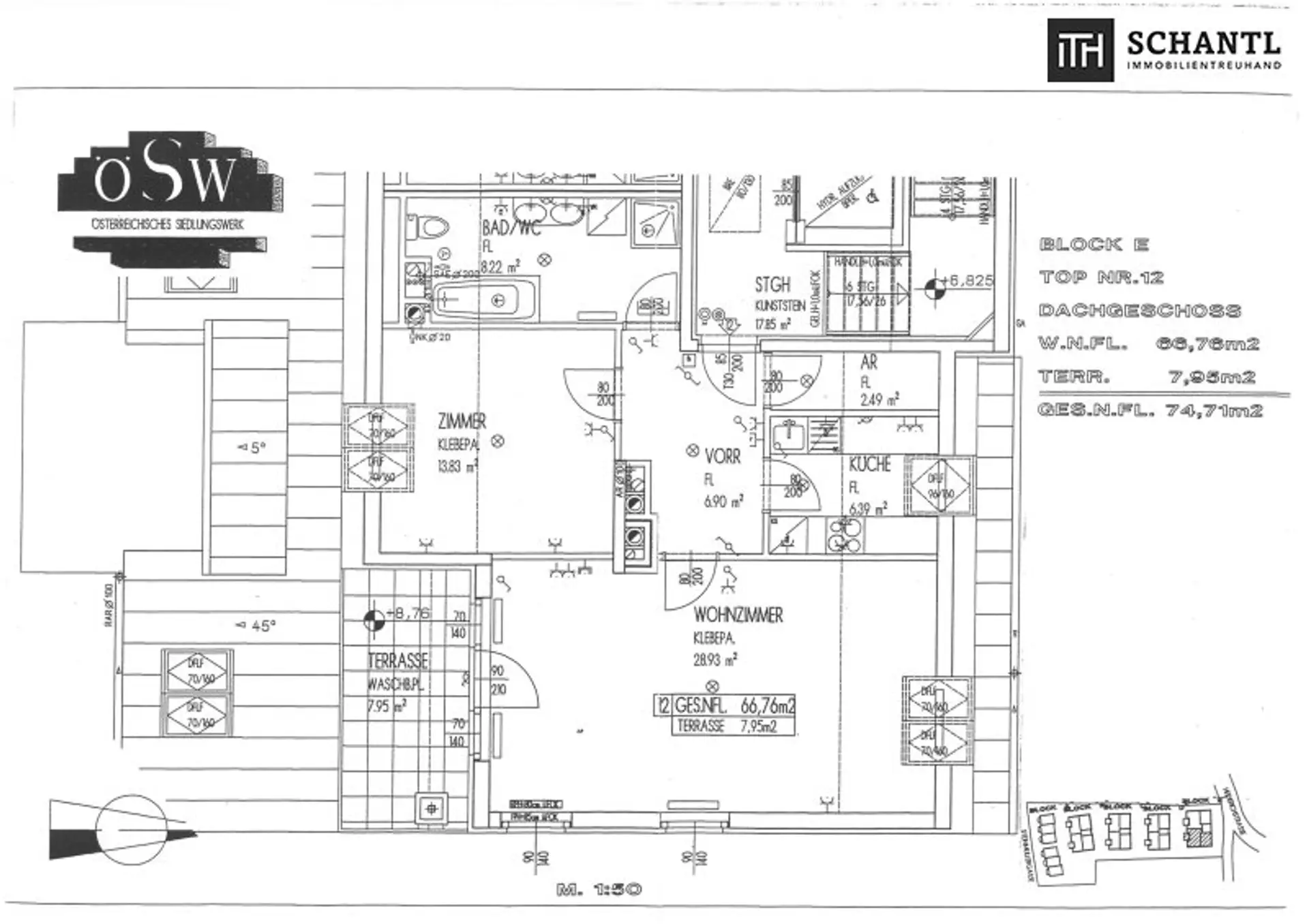 Wohnfläche: ca. 67,76m² + Terrasse: ca. 7,95m² + Kellerabteil ca. 1,60m² + Hauseigener Tiefgaragenplatz: ca. 11,5m²