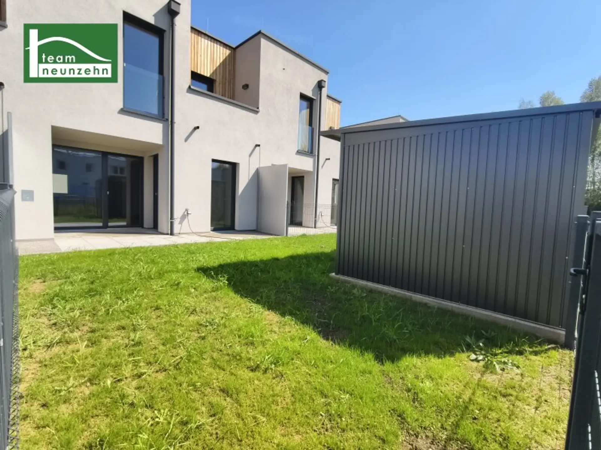 Bei der Ausstattung dieser großartigen Häuser wird nicht gespart und besonders auf hohe Qualität sowie Funktionalität geachtet! In den Wohnräumen werden Eichparkettböden verlegt, während der Vorraum, der Abstellraum und die Nassräume mit Fliesen ausgestattet sind. Für ein optimales Raumklima wird mittels Fußbodenheizung und kontrollierte Wohnraumlüftung gesorgt. Durch die 3-Scheiben Isolierverglasung der Fenster kommt jede Menge Tageslicht in die Räume. Per Fernbedienung kann die Lichteinstrahlung dank der außenliegenden Rollläden ganz einfach reguliert werden. Als private Außenflächen befinden sich bei jedem Haus eine Terrasse und ein Eigengarten im Erdgeschoss sowie zwei Balkone im Obergeschoss. Zusätzlich Stauraum bietet die hauseigne Gartenhütte. Jedes Haus ist außerdem mit einer eigenen Photovoltaikanlage ausgestattet, die den Eigenbedarf abdecken sollte.