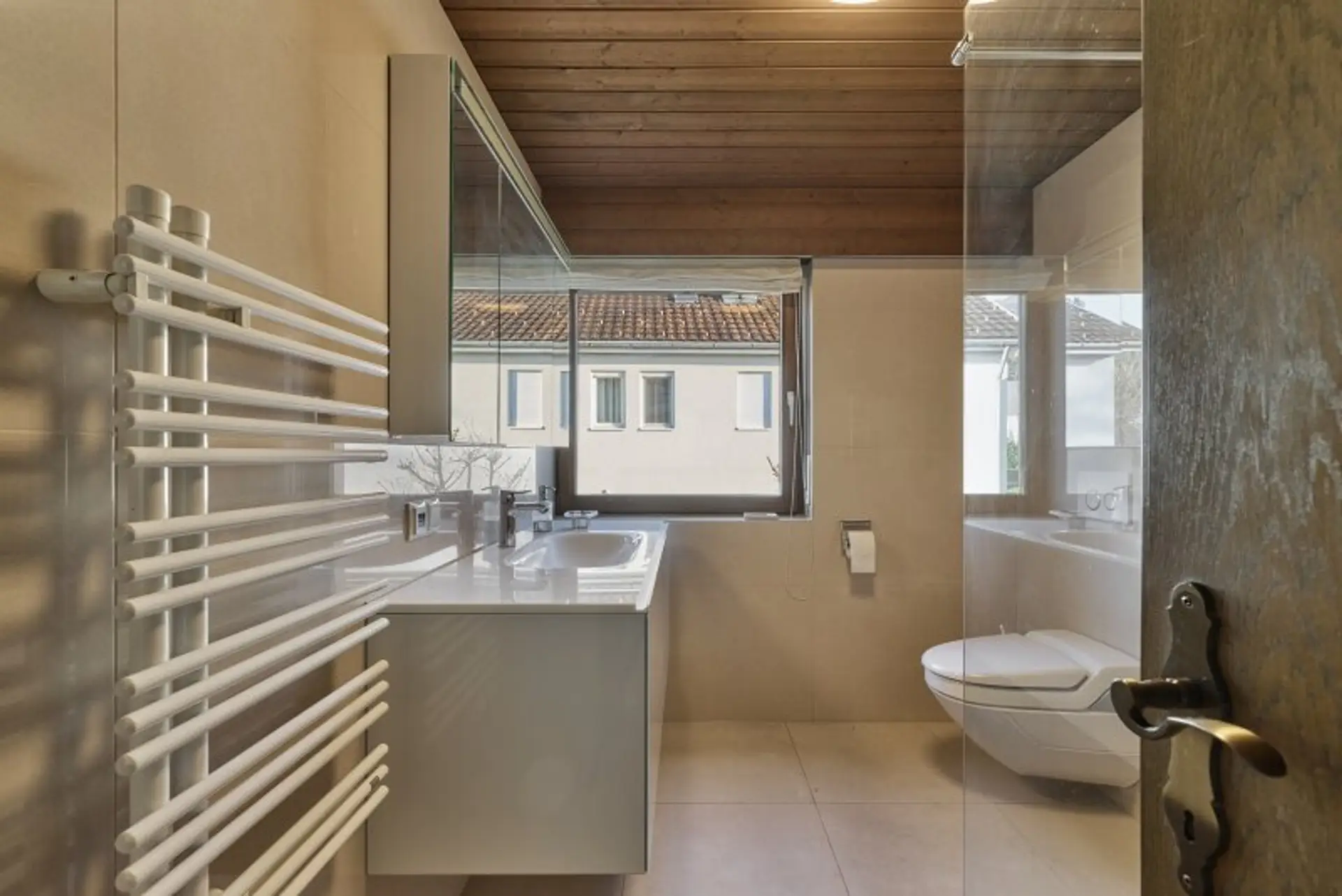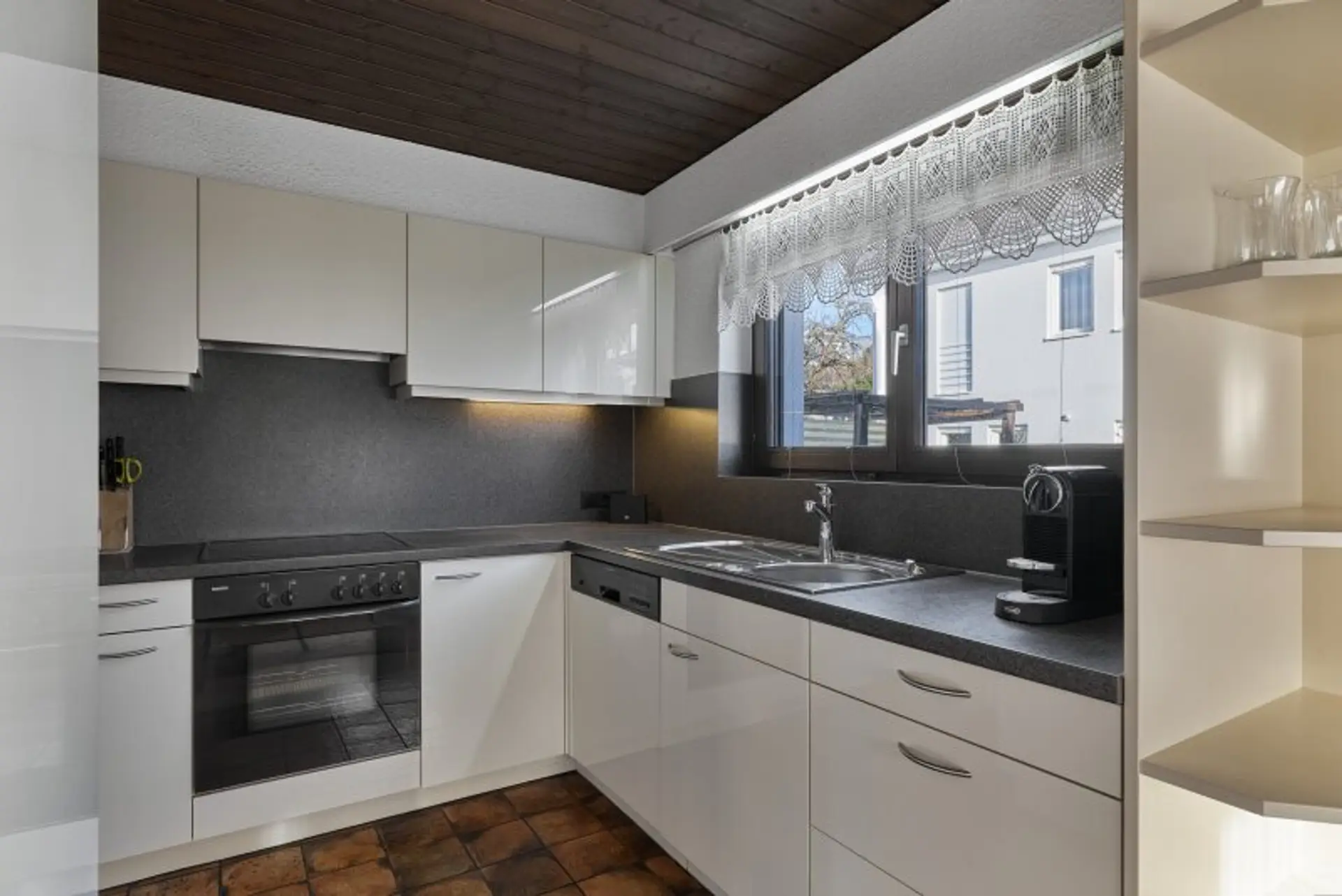 Das Herzstück des Hauses bildet die offen gestaltete Wohnküche, die mit ihrer funktionalen Ausstattung zu gemütlichen Kochabenden einlädt. Ein modernes Badezimmer mit stilvollen Armaturen und einer komfortablen Dusche sorgt für entspannte Momente. Hochwertige Bodenbeläge aus Fliesen und Parkett sowie eine effiziente Ölheizung unterstreichen den gepflegten Gesamtzustand.