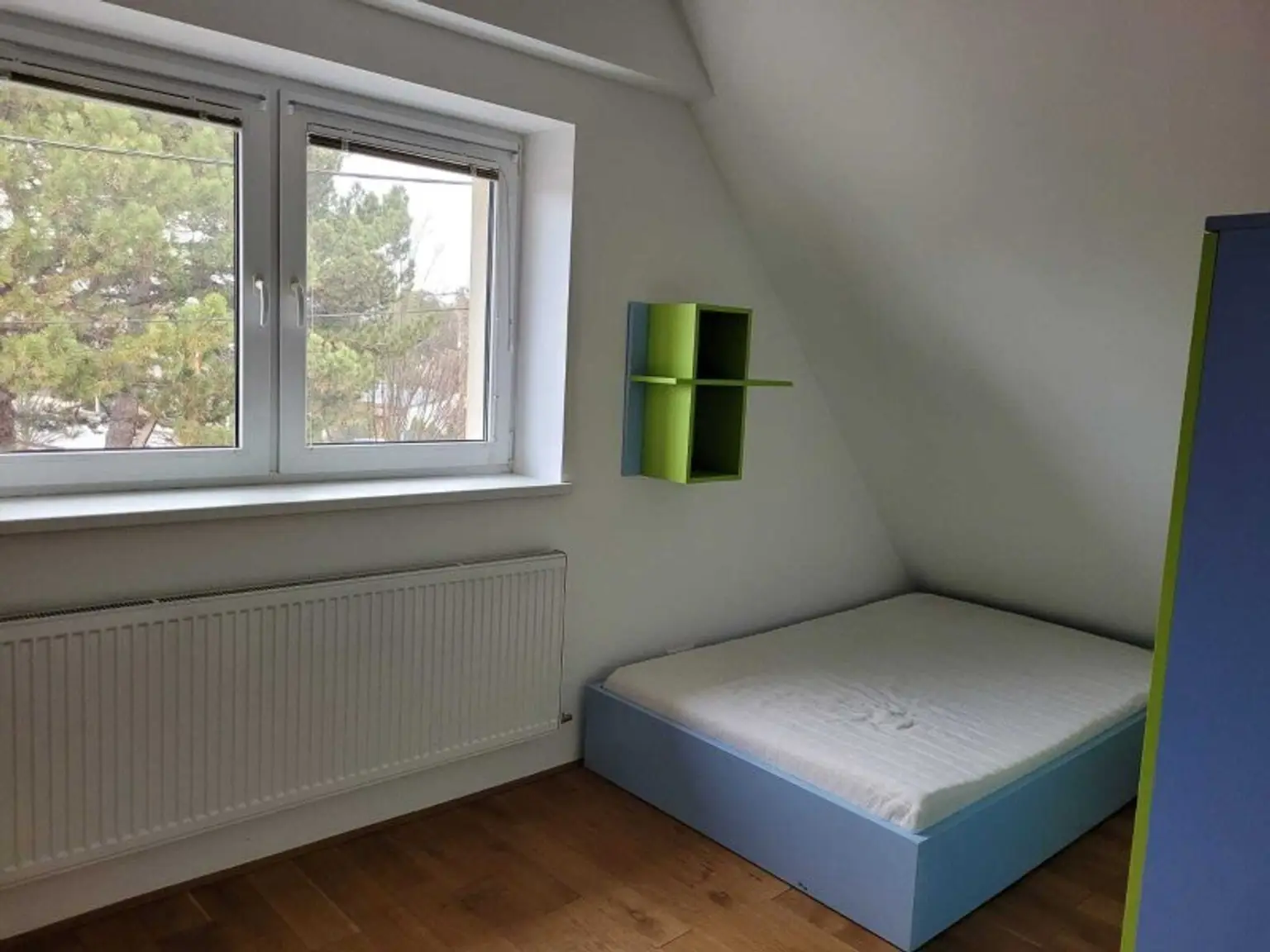 Im Erdgeschoss befindet die helle geräumige Einbauküche mit eigenem Essbereich. Das große lichtdurchflutete Wohnzimmer öffnet sich direkt zum gemütlichen Wintergarten, welcher mit einer Außenjalousien ausgestattet ist, der anschließenden Terrasse und zum sonnigen, ebenen Garten. Auf dieser Ebene finden Sie weiters 2 Schlafzimmer, ein Gäste-WC, ein Badezimmer mit Wanne und extra Walk-in Dusche.