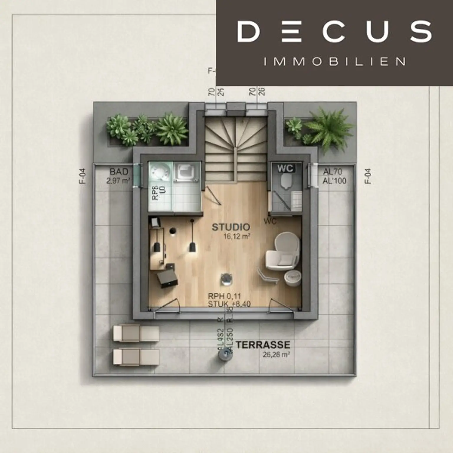 Ein Studio mit direktem Zugang zur großzügigen Dachterrasse eröffnet Ihnen vielfältige Nutzungsmöglichkeiten – ob als Rückzugsort, Atelier oder Loungebereich mit beeindruckendem Ausblick.