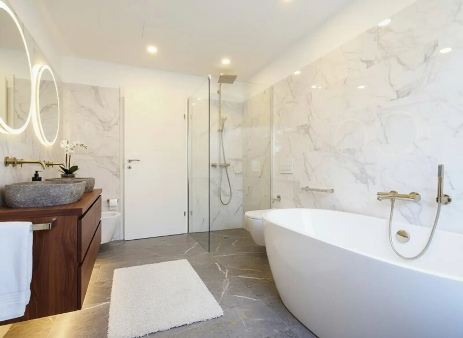 Die Zugang zum Penthouse befindet sich im 1. Dachgeschoss, die Schlafzimmer und der Vorraum sind mit hochwertigen Parketten ausgeführt, die Sanitärräum sind verfliest.