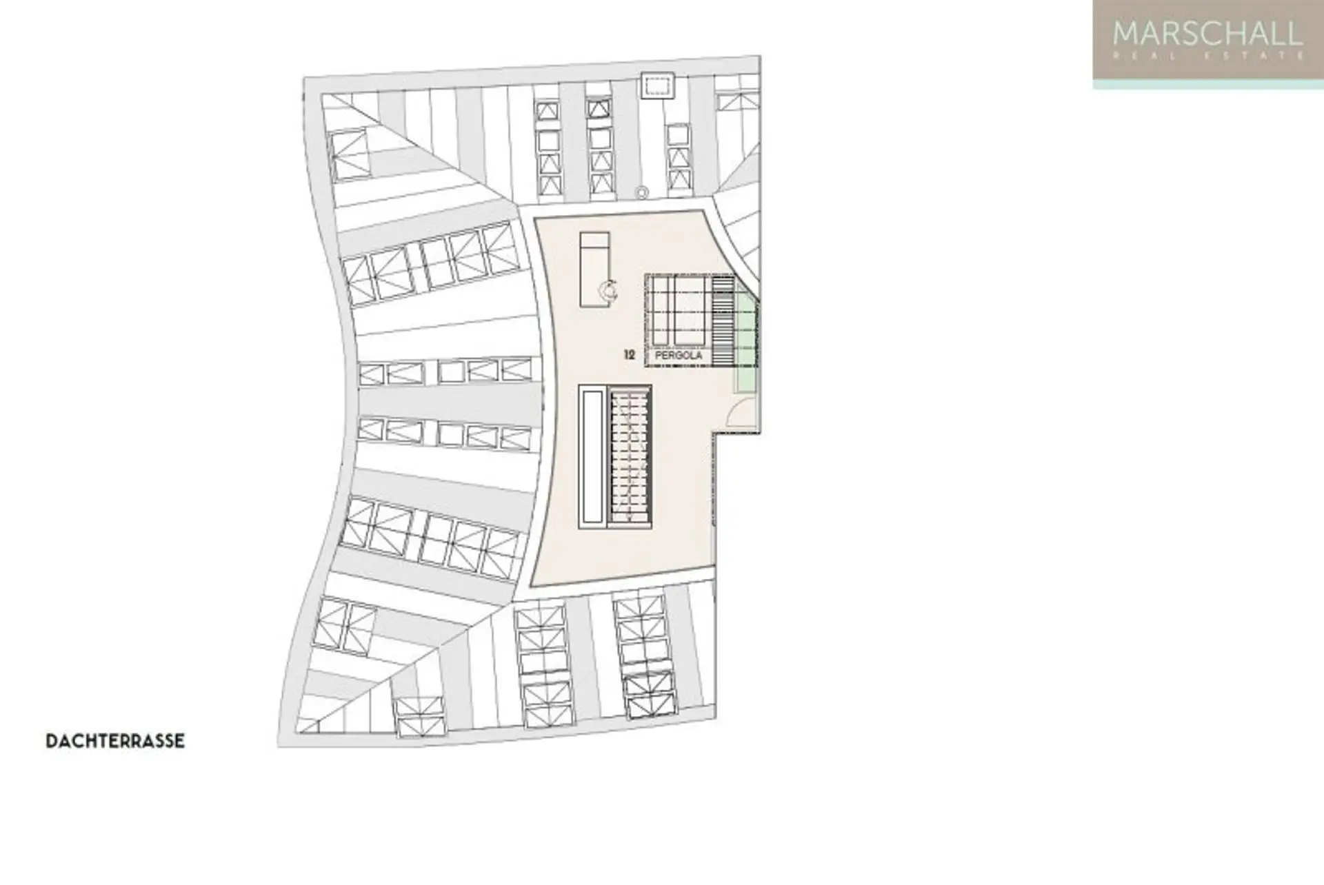 Von der großzügige Dachterrasse mit Pergola haben Sie einen traumhaften Blick über die Stadt.