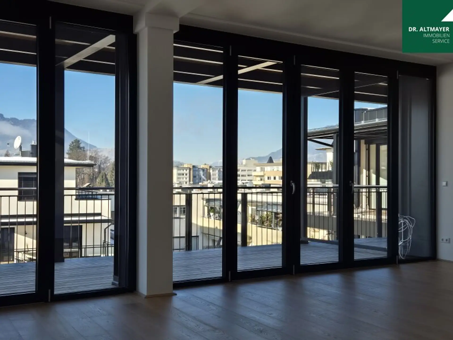 Ein Highlight dieser Immobilie ist die beeindruckende Terrasse, die Ihnen nicht nur einen spektakulären Bergblick, sondern auch einen unvergesslichen Fernblick über die Stadt und die umliegende Grünlandschaft eröffnet. Stellen Sie sich vor, wie Sie hier entspannte Stunden verbringen und den Sonnenuntergang über den Alpen genießen – ein wahres Paradies für Naturliebhaber und Sonnenanbeter.