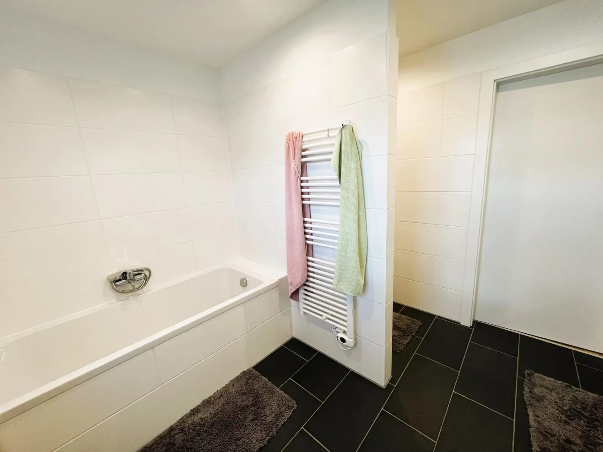 > Badezimmer mit Badewanne, Dusche und WC