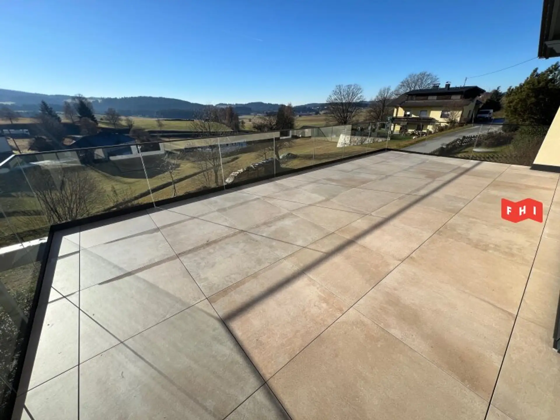 Sehr große Terrasse mit Glaselementen und traumhafter Fernsicht