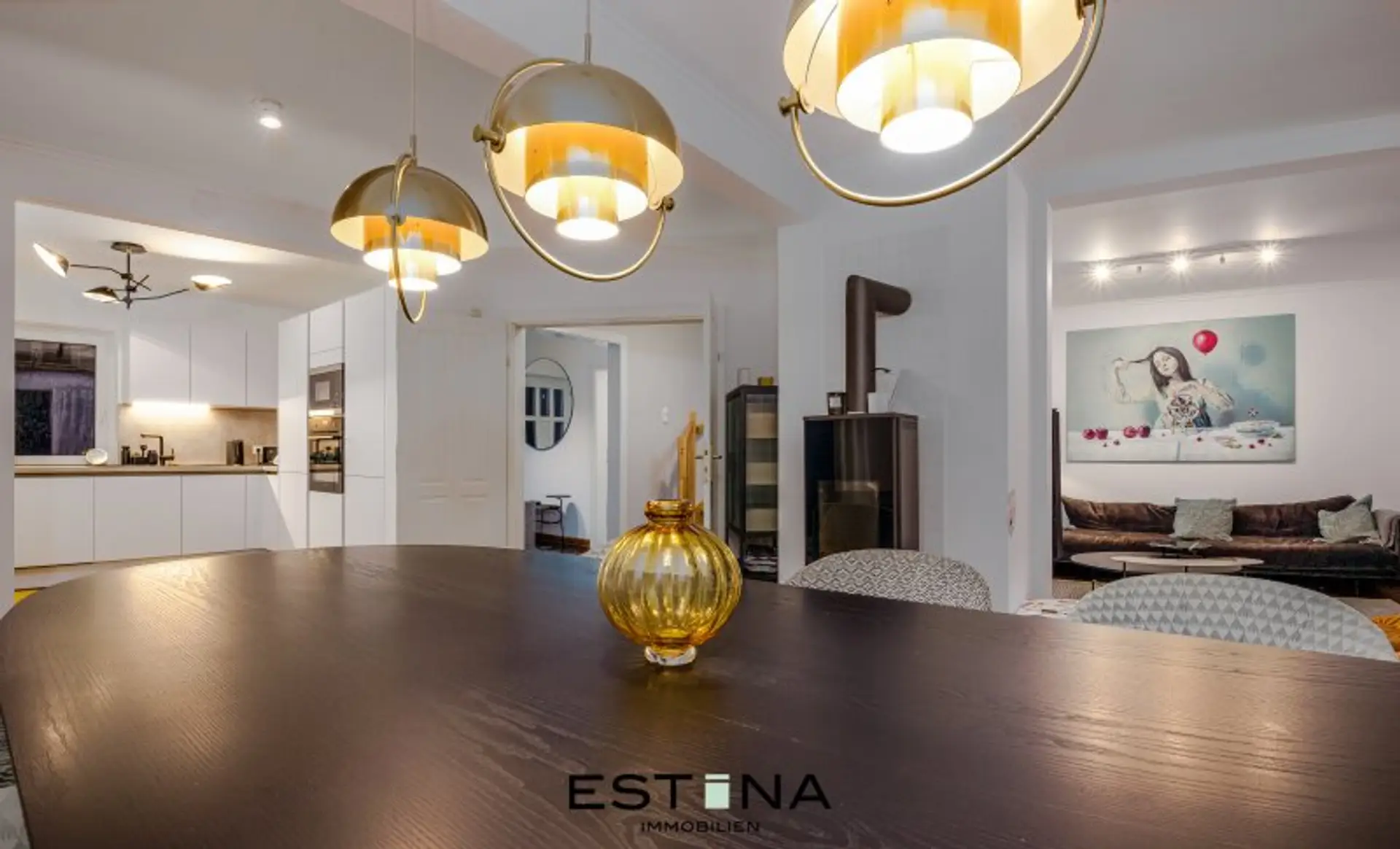 * Luftiger Wohn- und Essbereich mit gemütlichem Kamin und großer Gartenterrasse