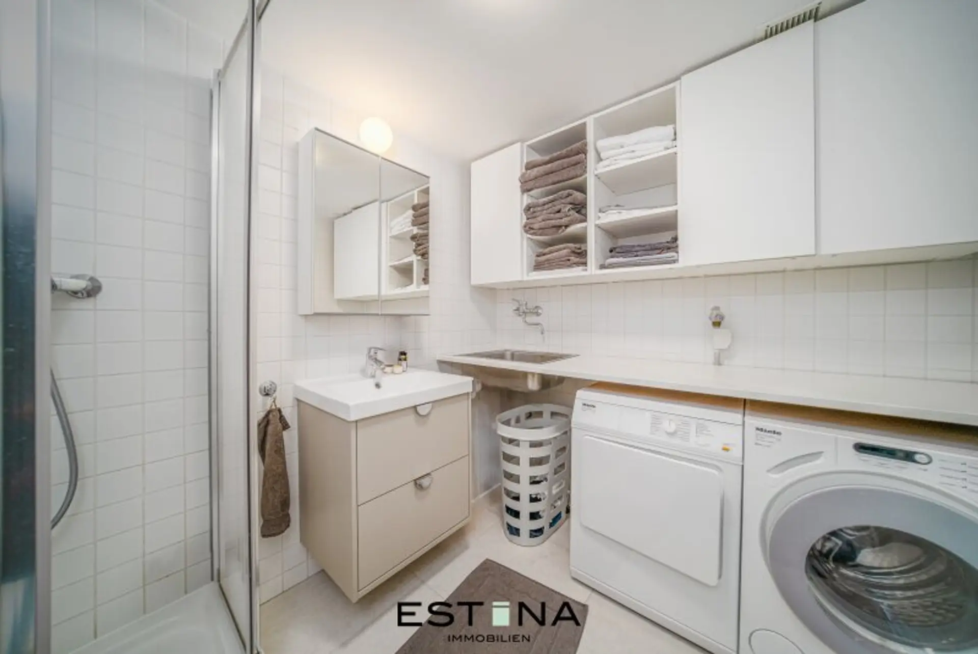 * Badezimmer inkl. Toilette, das aktuell als Waschküche dient