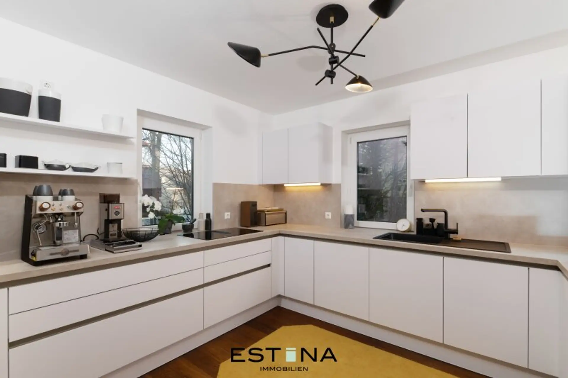 * optisch leicht abgetrennt und in das Wohnzimmer blickend liegt die geräumige Küche