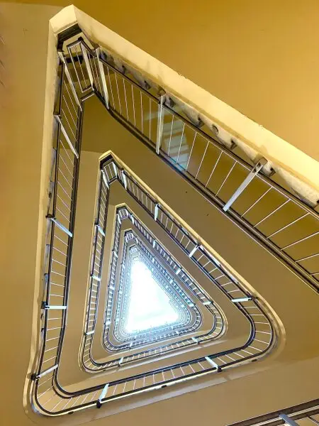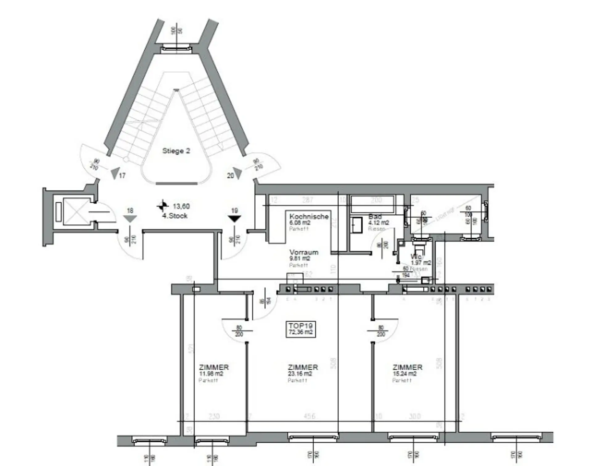 Das ursprüngliche Haus wurde im 2. Weltkrieg vollständig zerstört und 1961 komplett wiederaufgebaut. Ein dafür gewährtes Darlehen wurde für die gegenständliche Wohnung unter Inanspruchnahme des RBG 1987 vollständig vorzeitig getilgt. Beim Betreten des Hauses durch eine wunderschöne Schwingtür spürt man sofort den allgegenwärtigen Mid-Century-Charme, wobei das Treppenhaus durch seine außergewöhnliche dreieckige Form besonders prägnant ist. Größere Sanierungsmaßnahmen sind in nächster Zeit nicht geplant, die Reparaturrücklage betrug mit Dezember 2024 EUR 406.000,-.