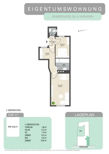 Die Wohnung befindet sich in 1030 Wien, einem beliebten Stadtteil in Wien. Sie liegt in einer ruhigen Wohngegend.