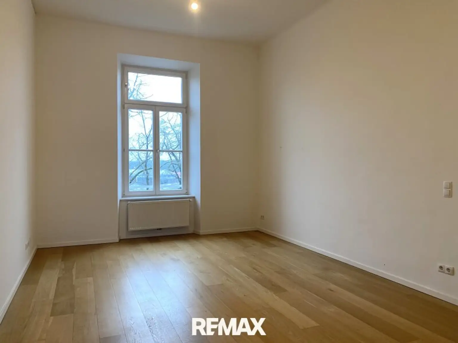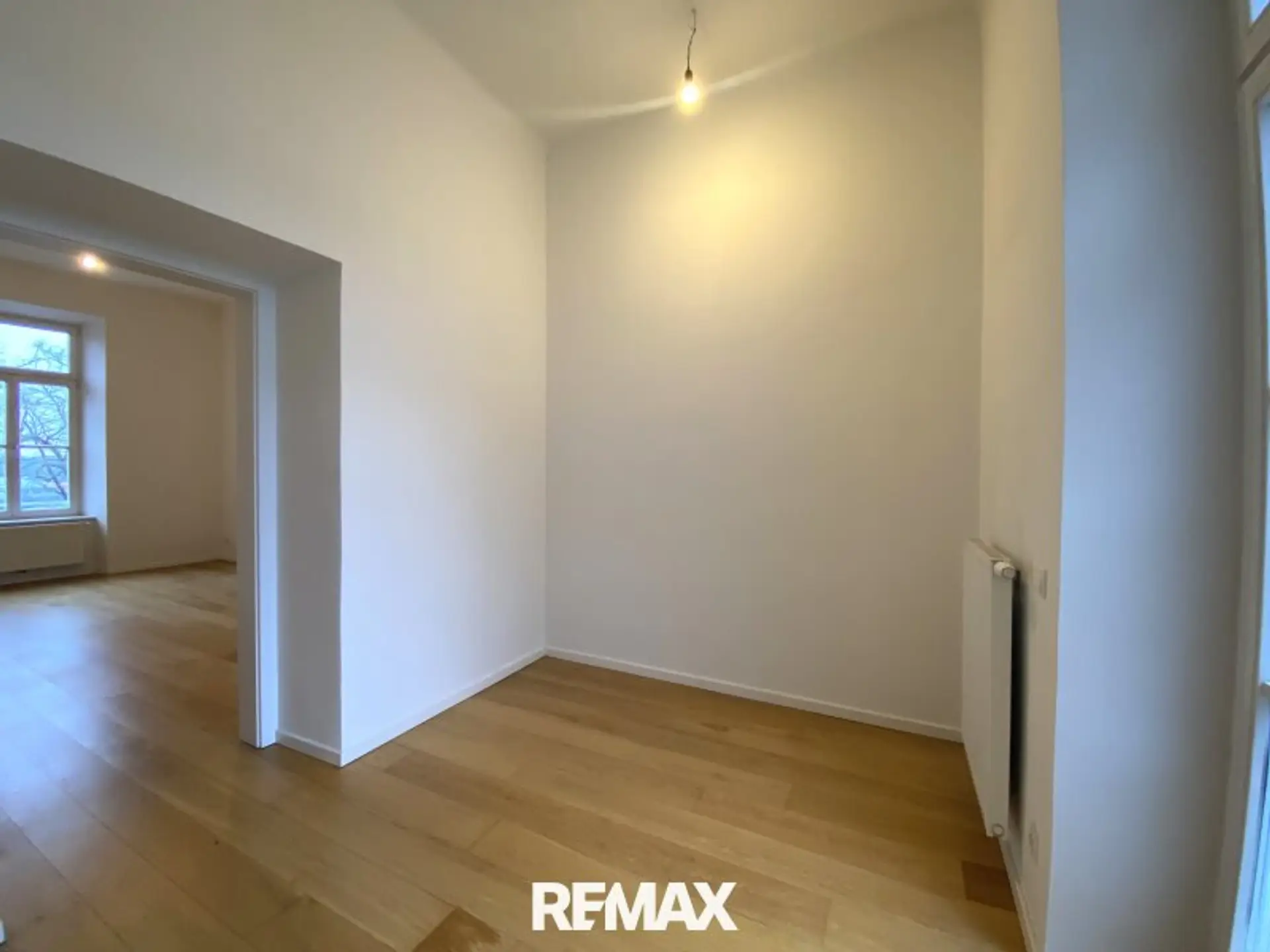 Sie betreten das palaisartige Gebäude über ein imposantes Eingangstor und eine mächtige Treppe führt Sie in den 2. Stock.