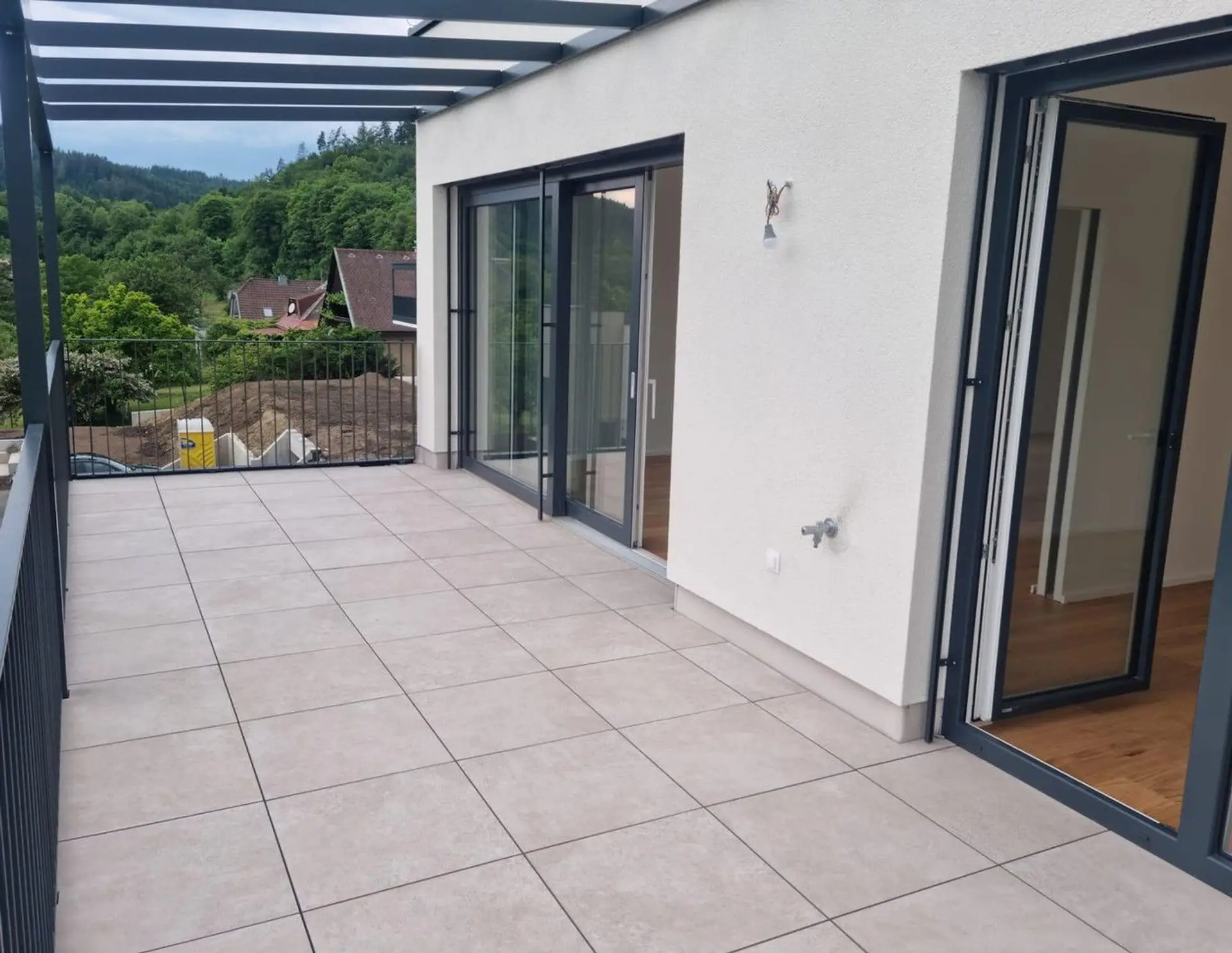Helle und moderne Dreizimmer-Wohnung (Neubau) im 1.OG, exzellent geschnitten, besticht durch große Terrasse und hervorragenden Blick auf den Wörthersee. Großes Wohn- und Esszimmer mit neuer hochwertiger Einbauküche, Sc…