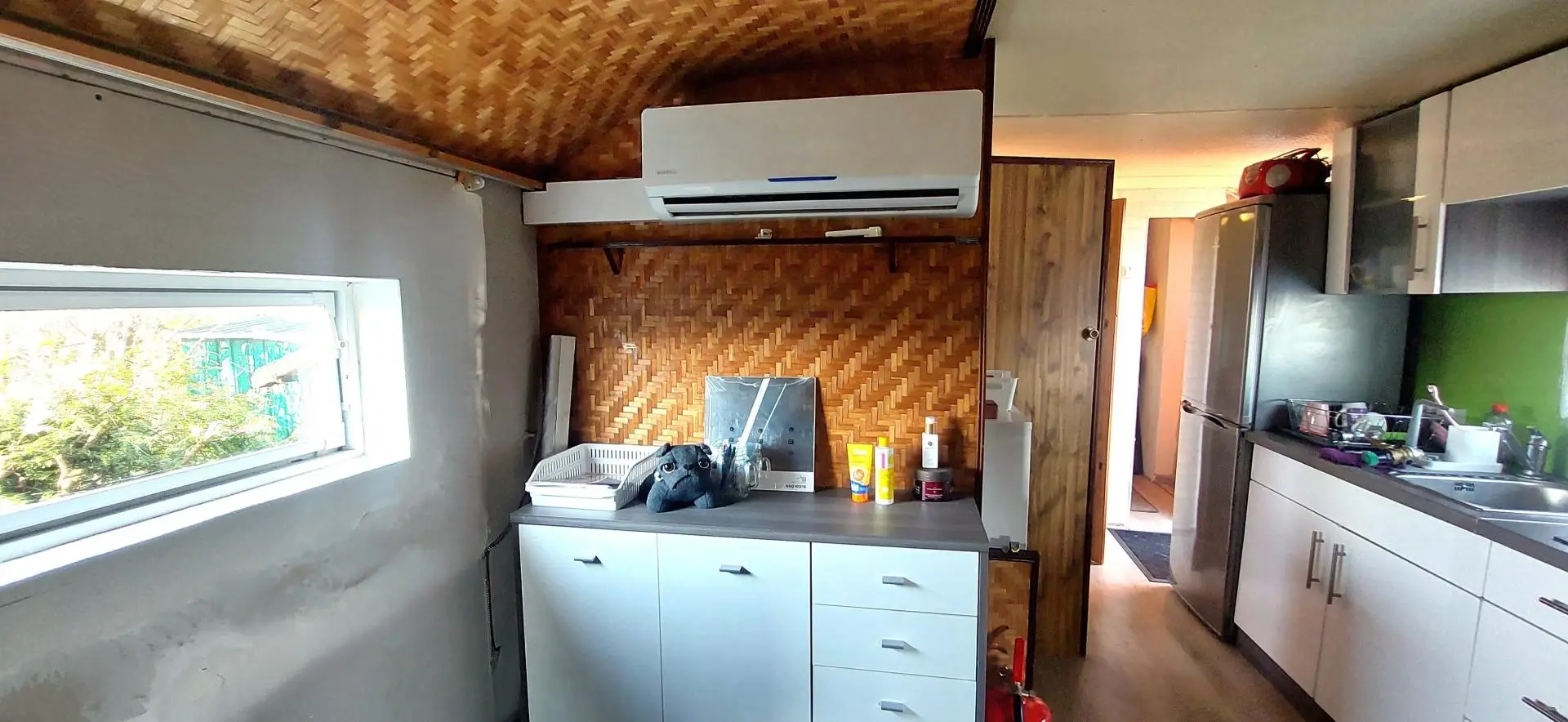 Eine Klimaanlage sorgt für Kühle an heißen Sommertagen. Das Mobilheim wird komplett ausgestattet angeboten: Ein TV Gerät, eine Sat-Schüssel, Klimaanlage, ein Gartengriller, Gartenmöbel..
